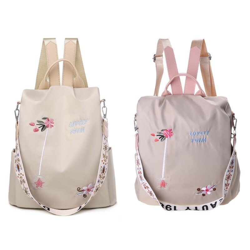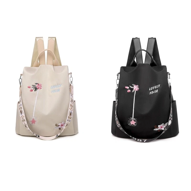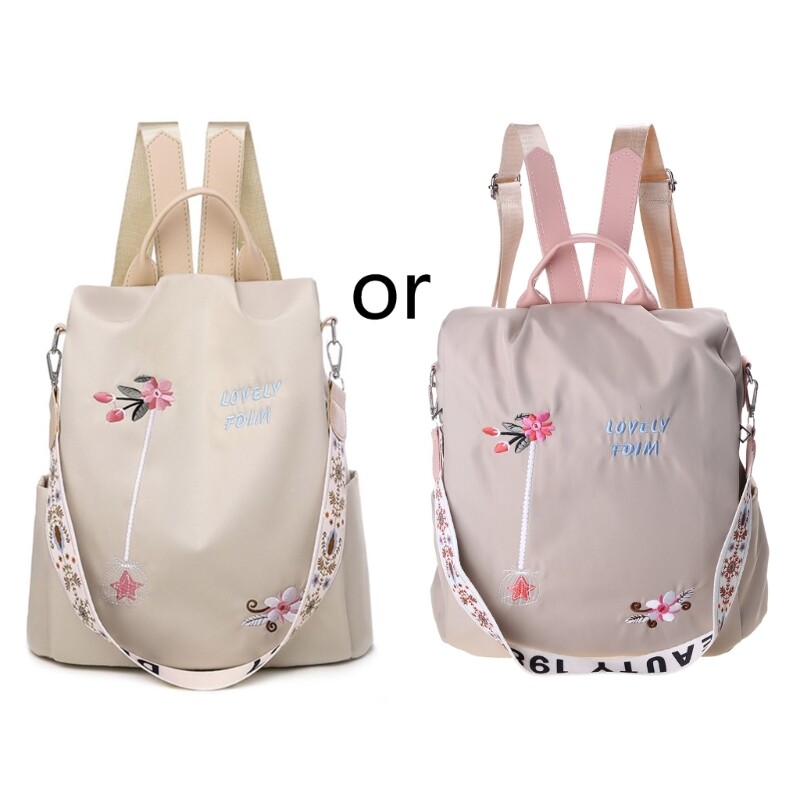 Anti Theft Women Backpack Ladies Daypack Rucksack Lightweight Stylish School Bag Description: and high Features: 3 Ways Convertible Bag: Besides two straps on the back, this daily bag comes with detachable and adjustable shoulder strap and you could use it as a shoulder bag, crossbody bag and a backpack. There are flower embroidery on the surface, very beautiful. Anti-theft lightweight and comfortable for you to carry everywhere you want. This backpacks has enough space that you can easily put daily items such as wallets, cosmetics, mobile phones, pads, paper towels, camera, It can be used for work, school, travel, hiking, fitness,shopping This stylish backpack can meet your different of daily outfit. Great others on Birthday, Valentine's Day, Mother's Day, Christmas, Graduation. Specifications: Gender: For Women Fashion Open Method: Zipper Nylon Optional Color: Black,Khaki Size:app. 32 x 29 x 11cm / 12.59 x 11.41 x 4.33in Quantity: 1 pc Note: 1cm=10mm=0.39inch No retail package. Please allow 1-2cm error due to manual measurement. pls make sure you do not mind before you bid. Due to the difference between different monitors, the picture may not reflect the actual color of the item. Thank you! Package includes: 1 x Women Backpack(other accessories in the picture is not included.)