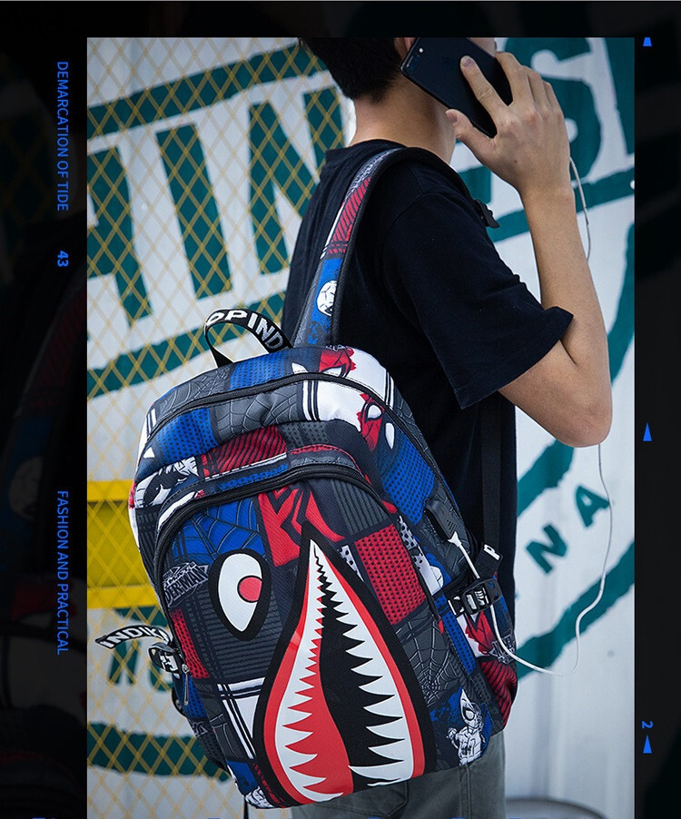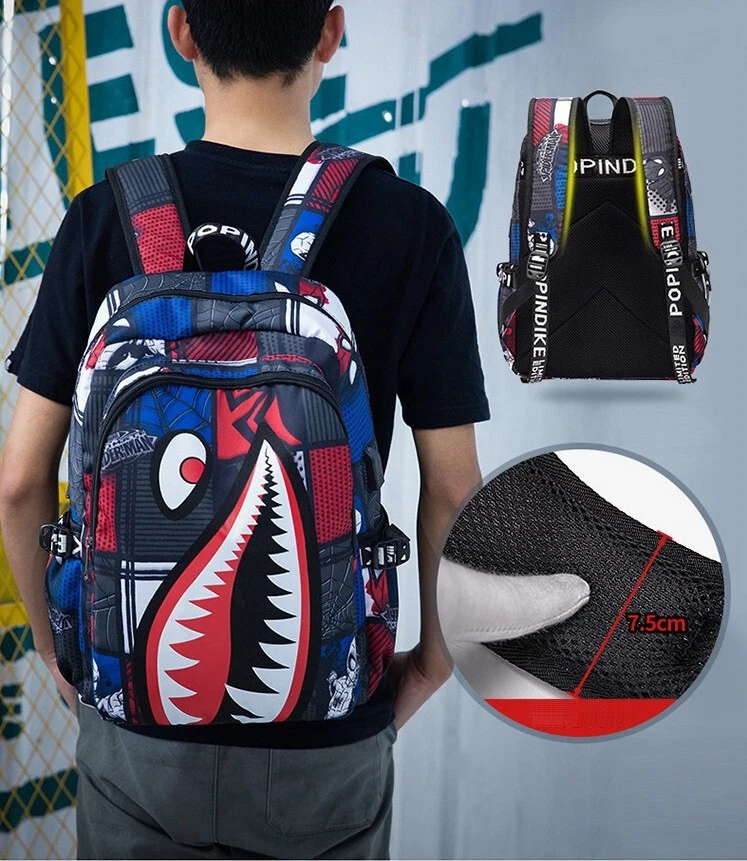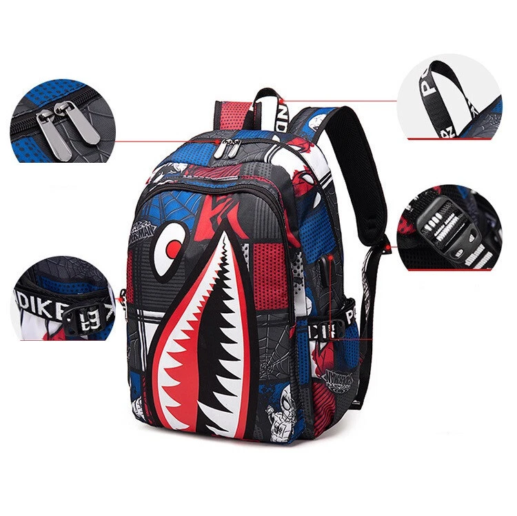 Description Material: High quality nylon Size : 42cm*29cm*17cm(H*L*W) / Shack mouth x Spiderman School Backpack Casual Students Backpack Shoulder Bag College School Bag Durable zippers, adjustable padded shoulder straps Multi-layer design, convenient storage. Perfect Backpack for laptop, iPad, books, cosmetic etc. The double zippers are made from superior quality ensuring smooth zipping. Package includes: 1 x Unisex School Backpack