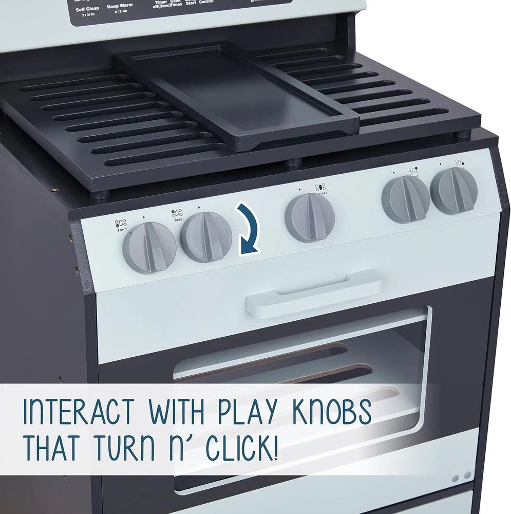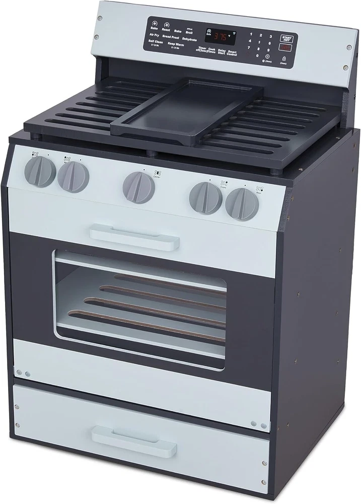 Lil’ Jumbl Wooden Play Oven | Gourmet Chef’s Kitchen Playset with Pretend Oven, Stove, Knobs & Storage Drawers for Toys | Beautiful, Realistic, Lifelike Design | Recommended Toddlers & Kids Ages 3+ DELUXE PLAY PRETEND OVEN FOR KIDS | Kitchen Play Set Lets Young Chefs Explore the Culinary Arts Just Like Mom & Dad! Includes Kid-Sized Cooktop Range, Grates, Griddle, Knobs, Oven, Control Panel, Racks & Storage Drawer for Pots, Pans, Utensils & Other Toys [Accessories Not Included] REMARKABLY REALISTIC, LIFELIKE DESIGN | In Addition to its Beautifully Understated Styling & True-to-Life Appearance, This Fun Fully-Equipped Appliance Inspires Endless Play Sessions as Toddlers Practice Baking Food in the Oven, Cooking on the Stovetop & Organizing Their Supplies INTERACTIVE ELEMENTS TEACH & ENGAGE | Educational Playset Helps Tots Understand Important Life Concepts While Encouraging Imagination, Creativity, Peer Collaboration, Problem Solving & Motor Skills | Hands-On Features Include Removable Baking Shelves & Knobs that Rotate & ‘Click’ SMOOTH, DURABLE WOOD CONSTRUCTION | Unlike Cheap, Clunky Plastic, Our Non-Toxic MDF Wood is Attractive, Lightweight, Eco-Friendly, Safe for Kids & Wipes Clean for Easy Maintenance | Great Choice for Children’s Play Room, Nursery, Bedroom, School Classroom, Day Care & More GORGEOUS GIFT ASSEMBLES IN MINUTES | Boys & Girls Pretend Kitchen Comes with Step-by-Step Instructions for Fast, Stress-Free Assembly [Requires Phillips-Head Screwdriver] | Charming Present for Birthday, Christmas, Hanukkah or Any Holiday [Recommended for Ages 3 to 10] Bring the art of cooking to life! Young cooks become master chefs with the Lil’ Jumbl Wooden Play Oven! This fully stocked range looks incredibly real, but make no mistake—it's 100% pretend and 1,000% amazing! Kids aged 3 and up learn their way around the kitchen while interacting with a ton of real, functioning features. From range knobs that turn and make clicking sounds to the spacious oven with removable baking racks, they’ll be churning out full-course meals in no time. Parents love the ample storage space for hiding toys, utensils, and play food, while little ones stay entertained for hours as they explore the unit’s various nooks and crannies. And don’t forget, Lil’ Jumbl always brings the special sauce! Unlike the typical colorful kitchen playsets, our engineered wood is designed to look like today’s upscale black and stainless steel ovens. *Chef’s kiss!* So give them the gift of educational entertainment, and embark on an exciting culinary adventure—add a Lil’ Jumbl Wooden Play Oven to your cart today!
