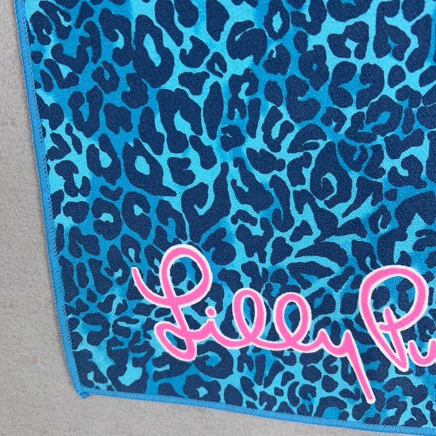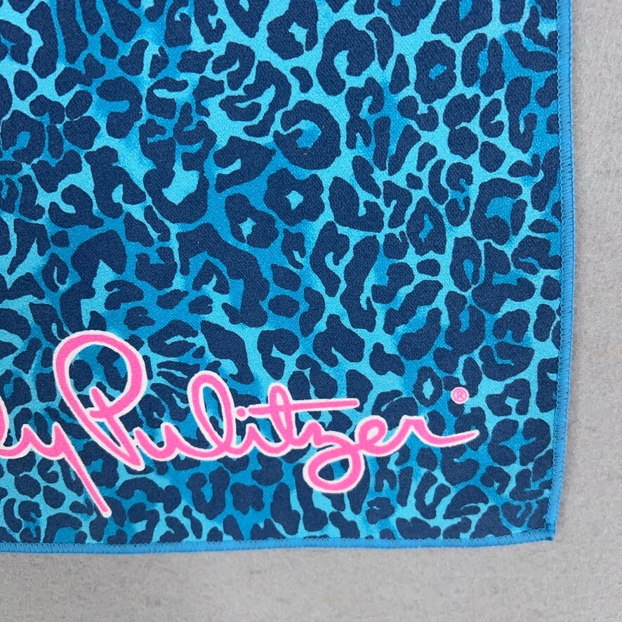 Lilly Pulitzer Towel Blue Leopard Pink Logo Microfiber Workout 16x20 Summer Lilly Pulitzer towel with a blue leopard print design and the brand's signature pink logo. It appears to be a small towel, possibly a hand towel or a workout towel All items are bagged and sealed after being photographed, then stored in a smoke free environment to ensure the item is exactly the same as when photographed. I carefully package and ship daily. Feel free to contact me with any questions. All items have been washed per eBay standards & policies.