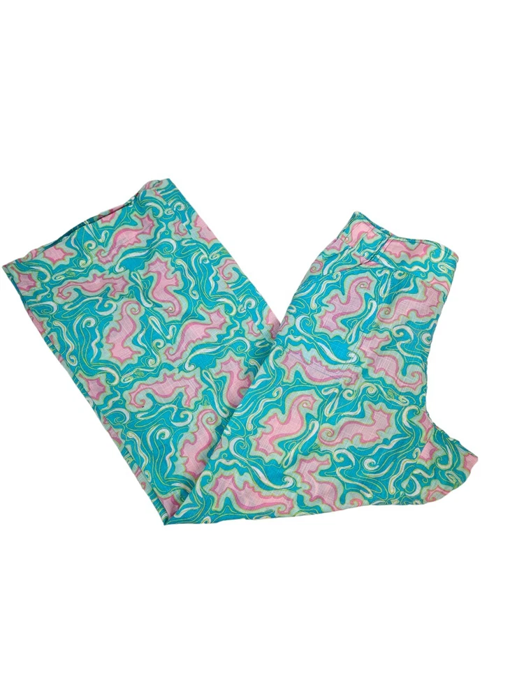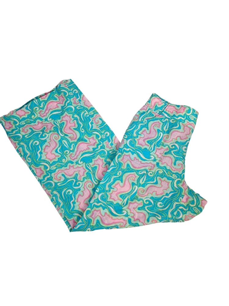 Lilly Pulitzer Resortwear Wide Leg Palazzo Pants Seahorse Print Size Medium K61