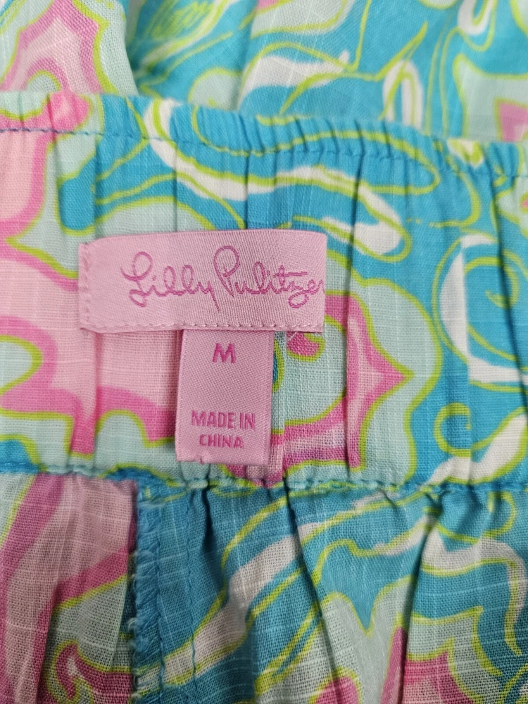Occasion: Casual, Party/Cocktail, Travel Color: Blue Accents: Logo Seller Notes: “Excellent - no flaws” Leg Style: Wide-Leg Model: lilly pulitzer Pattern: tropical Closure: Pull On Style: Dress Pants Season: Fall, Spring, Summer Fit: Relaxed Country/Region of Manufacture: Sri Lanka Front Type: Flat Front Theme: Beach, Preppy, Tropical, resort wear, resortwear, sorority Fabric Type: woven Garment Care: Machine Washable Material: Cotton Vintage: No Waist Size: 31 in Rise: Mid (8.5-10.5 in) Handmade: No Inseam: 30 in Type: Pants Size: M Features: Breathable, Comfort, Elastic Waist, Lightweight Personalize: No Size Type: Regular Brand: Lilly Pulitzer Department: Women