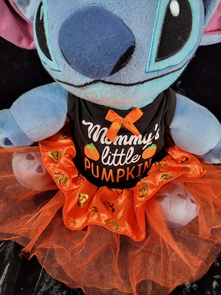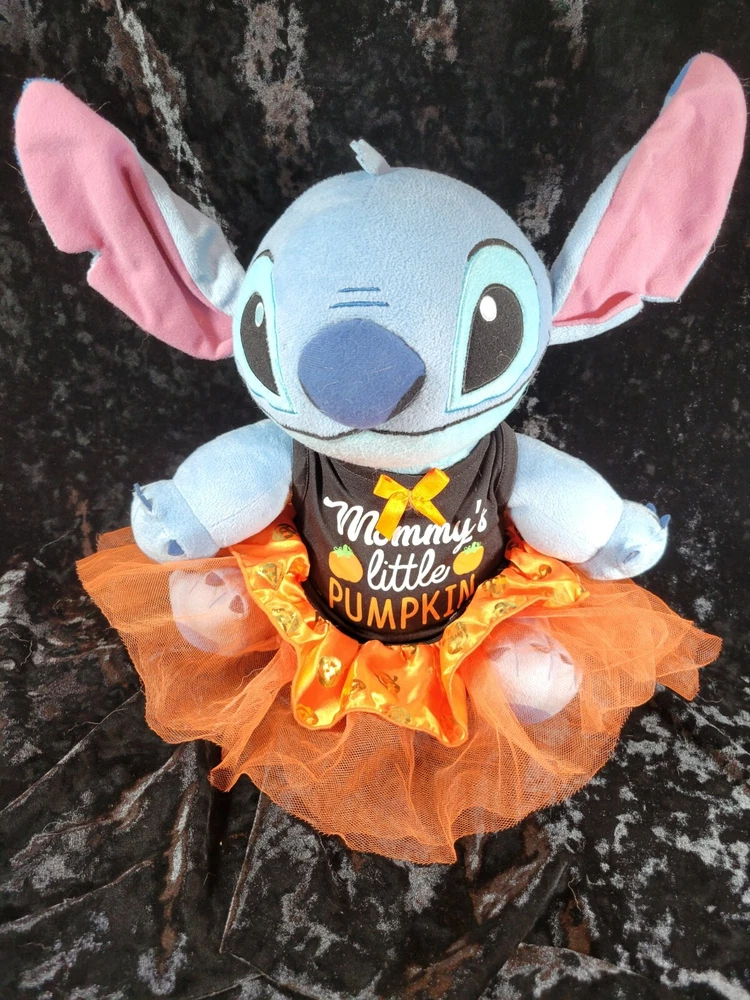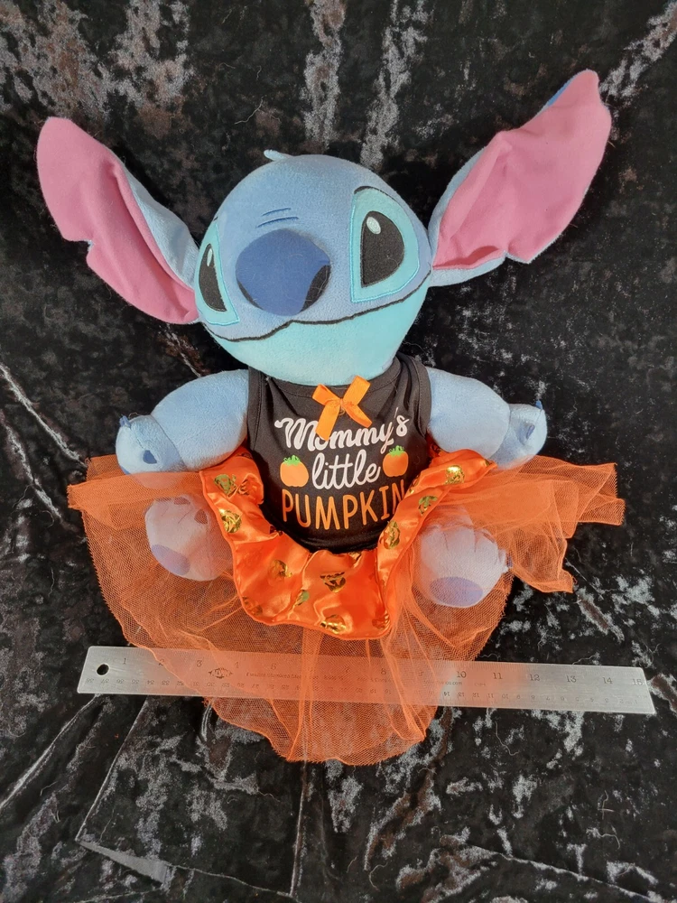 Lilo & Stitch Halloween Disney Plush Toy with " Mommy's Little Pumpkin" on her Halloween Dress. This little bundle is very soft and in very good condition. Please let me know if you want more pictures or have any questions. Each item is carefully packaged to prevent any damage and is shipped immediately with tracking.