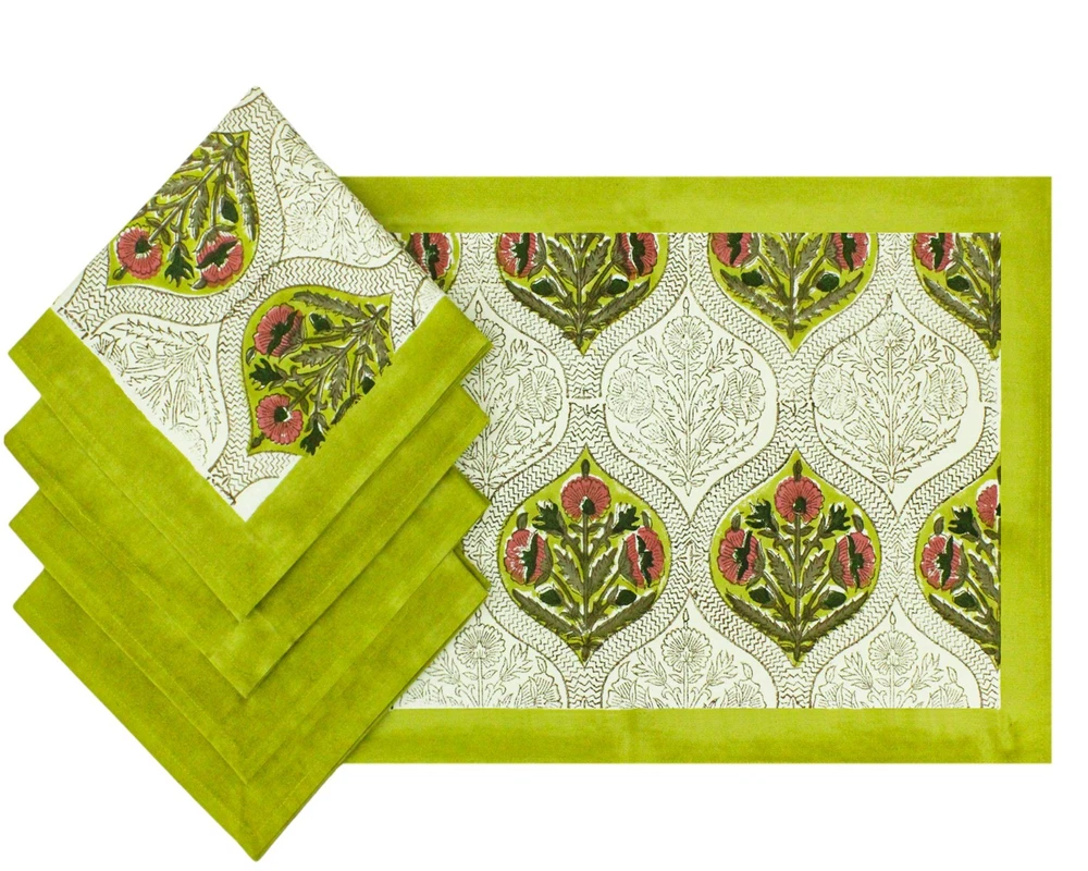 $ 20.65Colorful Indian Hand Block Printed Cotton Table Napkins in Green & Blue