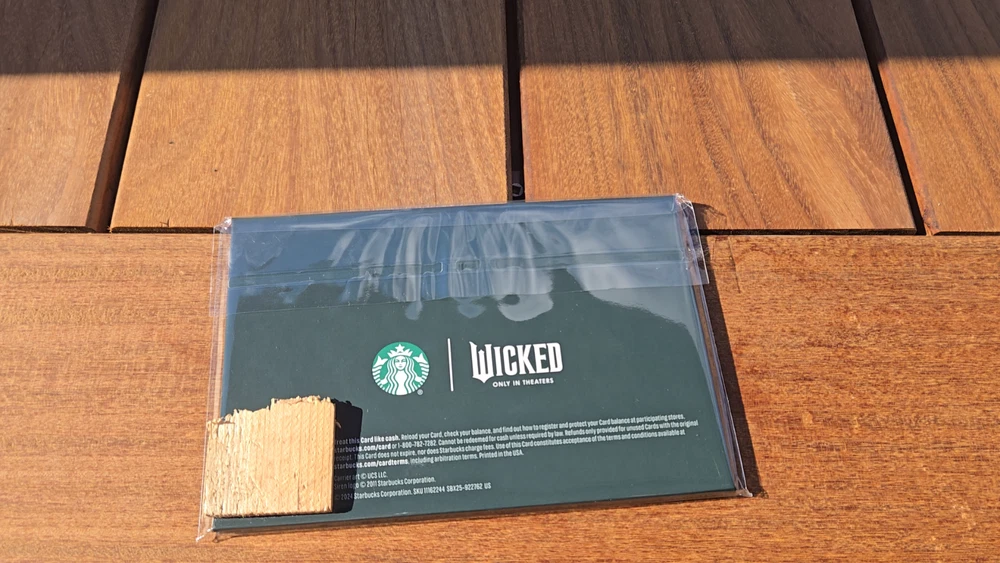 The card is preloaded with a 50$ value.The card is engraved with the wicked design. -Wood is covering barcode to make sure it doesn't get used -Unopened