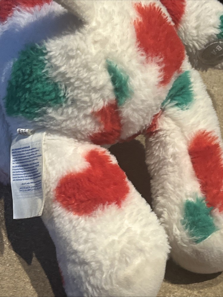Celebrate the holiday season with this limited edition Build-A-Bear Christmas Cow. This 16-inch plush bear is dressed in a festive red and green outfit, perfect for Christmas. Its eye color is green and it has a multicolor bear color. This item is an original and has not been reproduced. The Build-A-Bear Christmas Cow is a great addition to any collection and makes for a perfect gift. It features a plush material and has been manufactured in China. This item is part of the Holidays & Christmas theme and is an ideal gift for those who love bears.