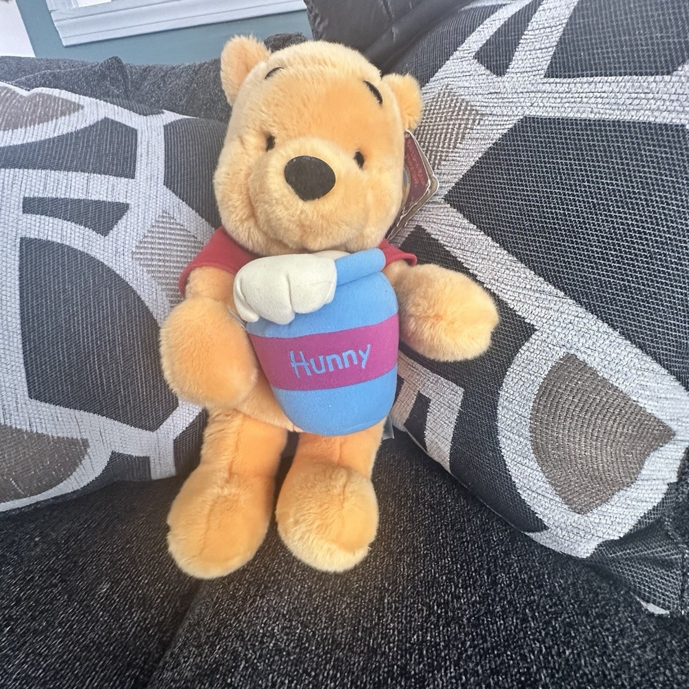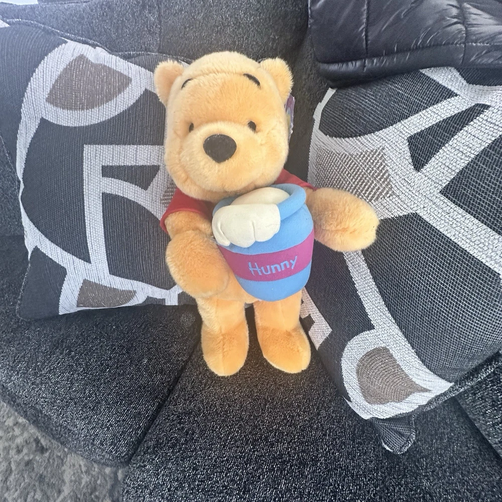 The Build-A-Bear Workshop Winnie the Pooh Plush Limited Edition is an adorable orange bear standing at 18 inches tall. This plush bear features the beloved character Winnie the Pooh and comes with a honey pot accessory, making it a delightful addition to any collection. Made from plush material, this limited edition bear is part of the Disney franchise and is sure to bring joy to both children and collectors alike.