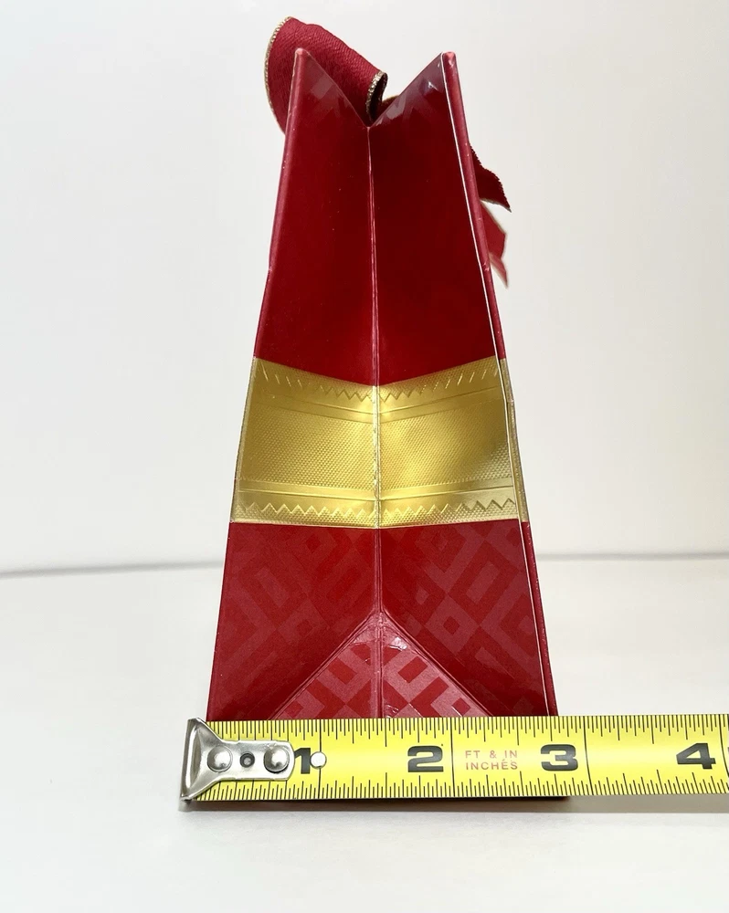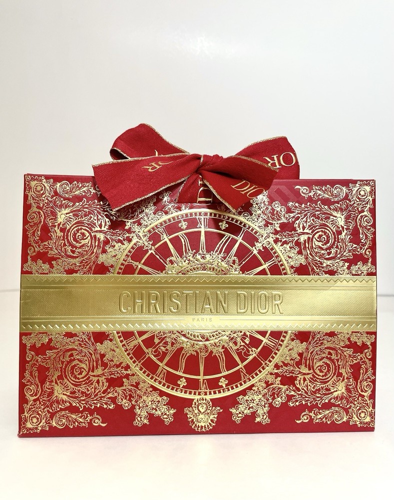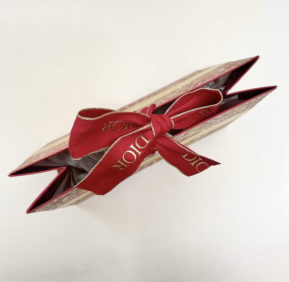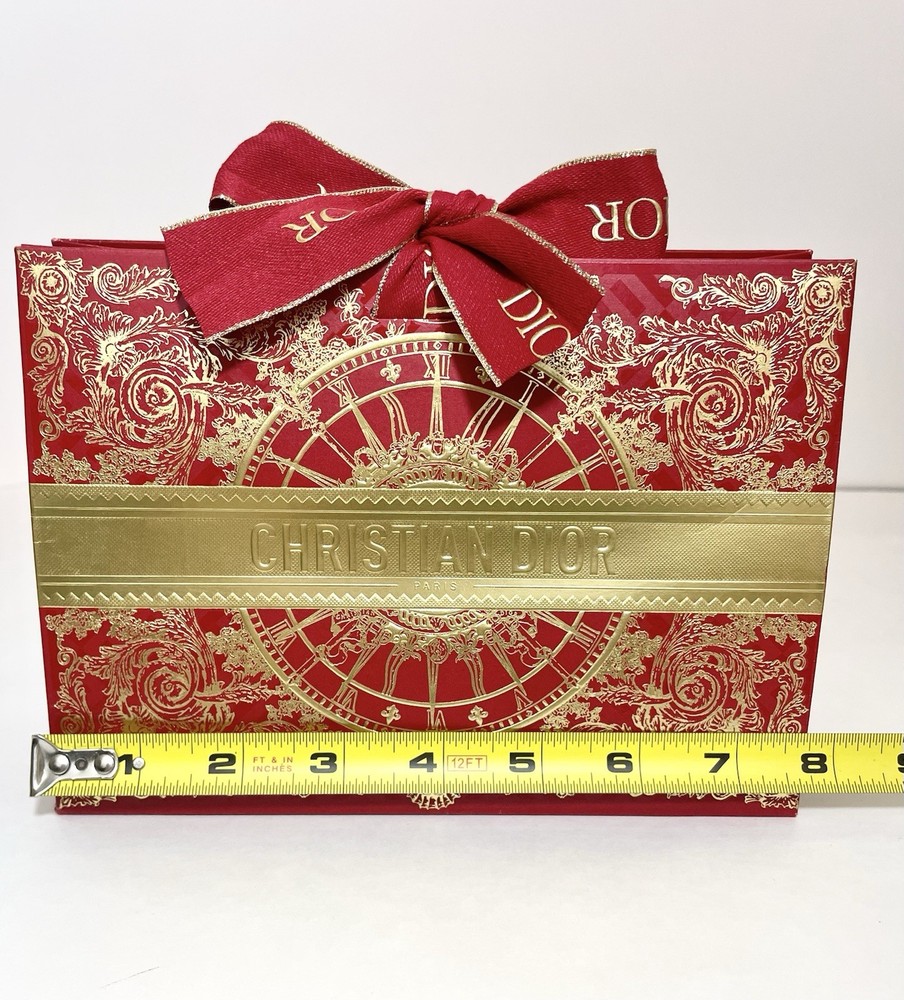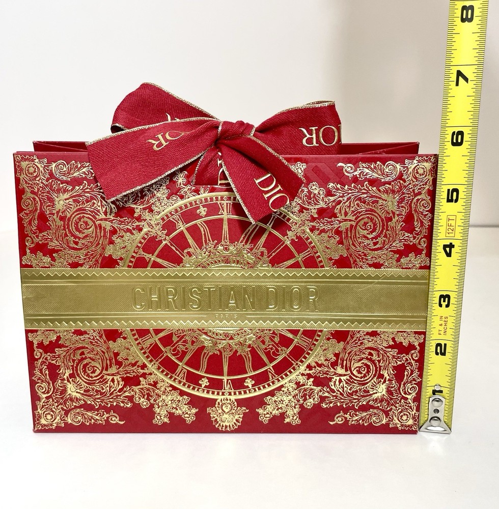This limited edition Dior gift bag is the perfect addition to your luxury shopping experience. Measuring 7.8”x5.8”x2.8”, it is made of high-quality cardboard, cloth, and paper materials, and features a stunning red and gold color scheme. Whether you're celebrating an occasion or simply want to add some extra touch to your gifts, this Dior gift bag is the way to go.