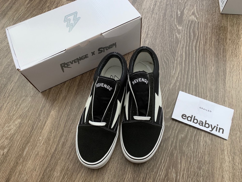 Limited time sale!! Buy before the sale is gone 100% Authentic Revenge x Storm Vans Original Classic Black Multiple Size 100% AUTHENTIC GUARANTEED ! Legit check is welcomed from any where. GOAT & StockX Power Seller. Please refer screenshot for reference. Shoes condition: Brand New with Box Real photos taken. Free feel to message if you have any questions. Package will be sent in the next business day. Size advice: Size is similar to VANS size.