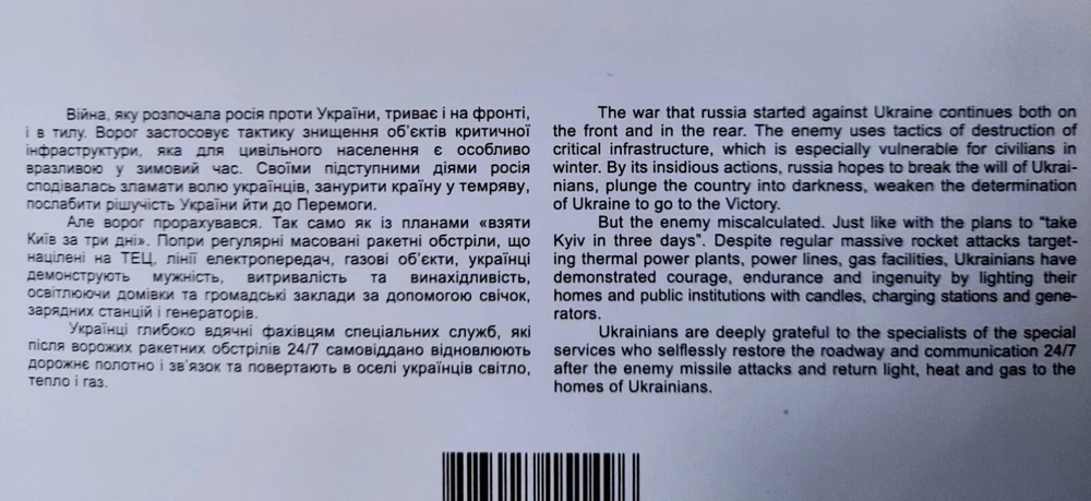 Limited edition! CFD Марки военного времени Украина 2023г Спецгашение The stamp is made with white ink Серия "Warriors of Light Warriors of Good" Спецгашение конверт первого дня форматом С5, лист марок из 6 шт марок Special payment 15.02.2023 Postal envelope of the first day, which will be a worthy addition to any collection of postage stamps of the wartime 100% оригінальний товар Укрпошти Sheet of stamps The number of stamps in a sheet is 5 Ukrposhta catalog number — 198 (2023-2027) put into circulation on February 15, 2023 Ukrainians are deeply grateful to the specialists of the special services, who, after enemy rocket fire, selflessly restore the road surface and communications 24/7 and return light, heat and gas to the homes of Ukrainians The size of the stamp sheet is 128x83 mm
