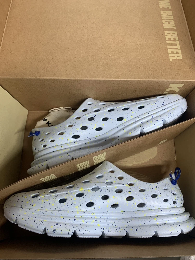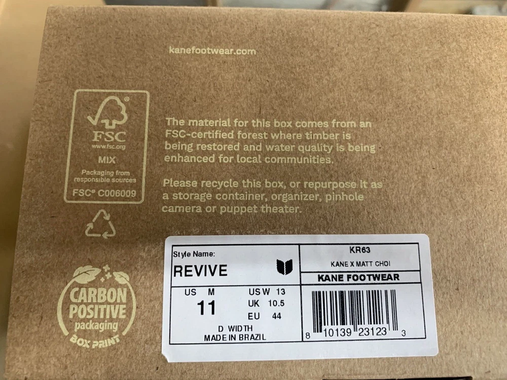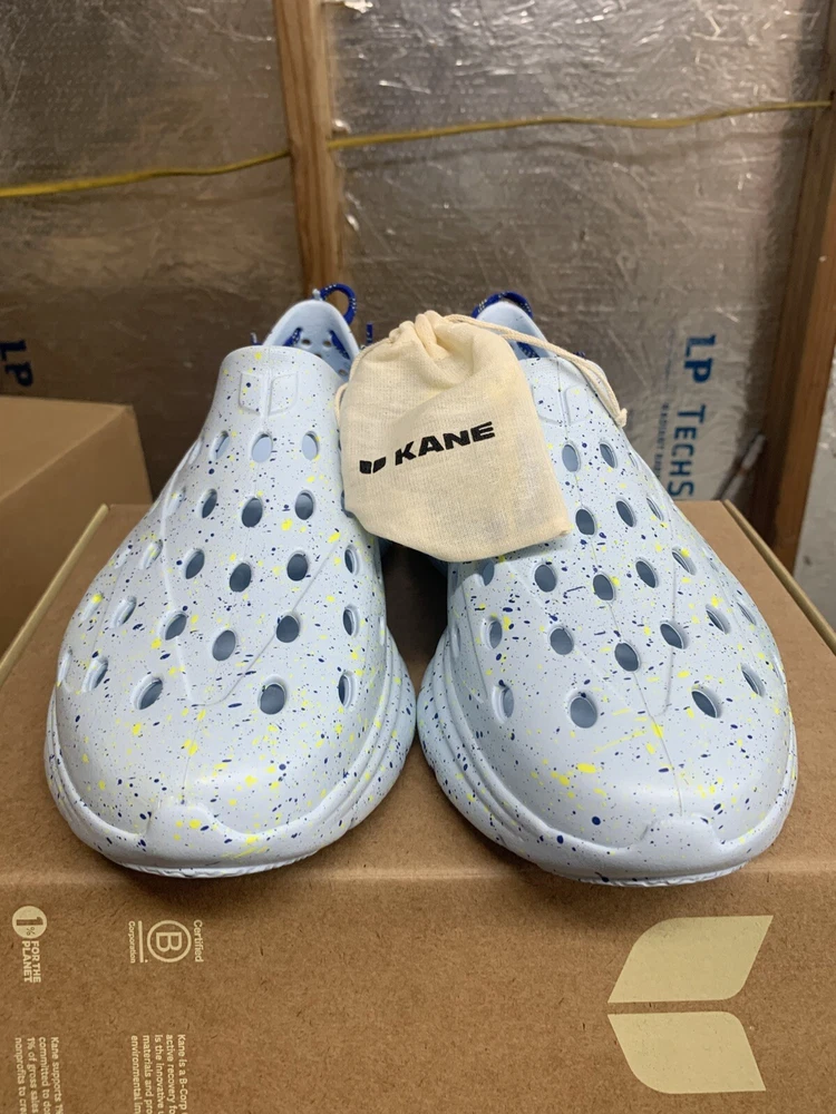 Brand new with box Men's size 11, Women's size 13 All sales are final, no returns Fast shipping! KANE Revive shoes are made of bio-based closed-cell RestoreFoam™. The shoes don’t absorb moisture, so they’re just as functional in water as they are on land, and they’re quick-drying. The KANE Revive shoes can easily be wiped or washed off with soap and water. Please avoid exposure to extreme heat or sun for this can cause the shoes to shrink or warp. Dishwashers, washing machines, or hot cars can also cause the shoes to shrink or warp. The KANE Revive sizing follows the standard sizing for a running shoe. Therefore, the size guide should be utilized according to your typical running shoe size. IN BETWEEN SIZES? We recommend sizing down (ex. if you typically wear size 10.5 - select size 10). For a wider foot, go one half size up (ex. if you typically wear size 10.5 - select size 11).
