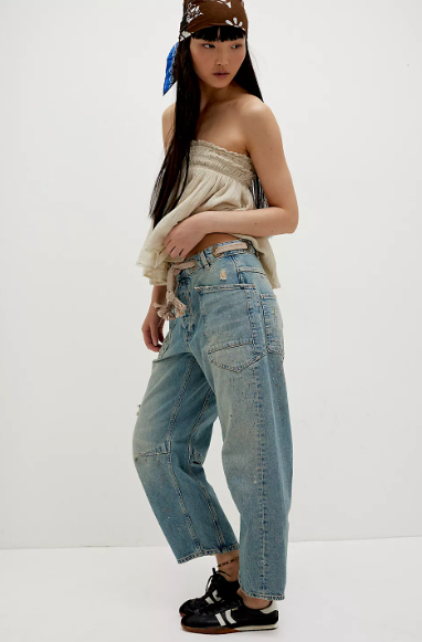 Limited time Offer FREE PEOPLE We The Free Moxie Pull-On Barrel Jeans - Union Blue NEW WITH TAG Details Style No. 69328516; Color Code: 045 The perfect cool & contemporary addition to any denim drawer from our We The Free collection. Fit: Low-slung, slouchy fit with tapered silhouette Features: Distressed detailing throughout, paint splatter features, oversized patch pockets, contrast drawstring waist, pull-on style Why We <3 It: Statement-making with an effortless touch of edge, these jeans are sure to stun with every wear. We The Free Heritage inspired and lived-in staples. We The Free is an in-house label. Size + Fit Measurements for size 28 24 in Inseam: 26 in Hips: 43.5 in Waist: 33.5 in Rise: 11.75 in 29 in Contents Care Machine Wash Cold Contents 100% Cotton Origin Import