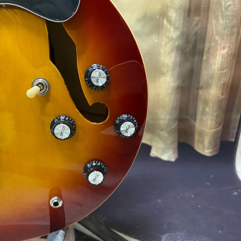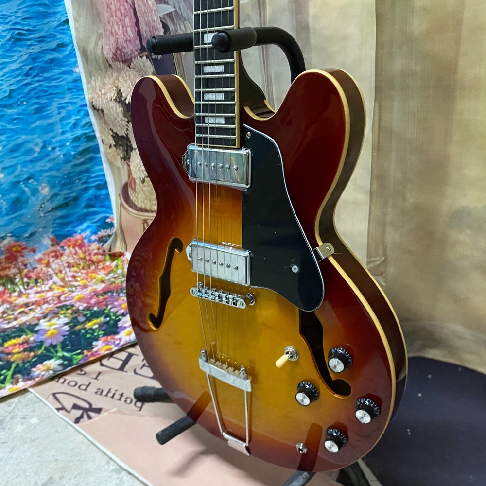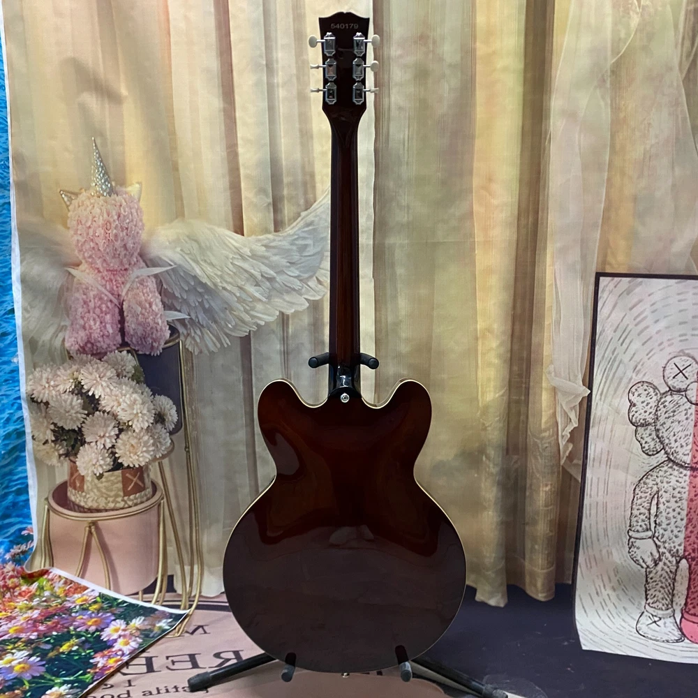 The product is a limited time discount ES335 SUNBURST electric guitar with a semi-hollow body type and a vintage sunburst finish. It features a mahogany neck, rosewood fretboard, 22 frets, and a 6-string string configuration. This professional-level electric guitar is part of the Standard series, perfect for right-handed players looking for a high-quality instrument with a classic design. Made with maple body material and manufactured in China, this guitar offers great performance and style for musicians in need of a reliable electric guitar.