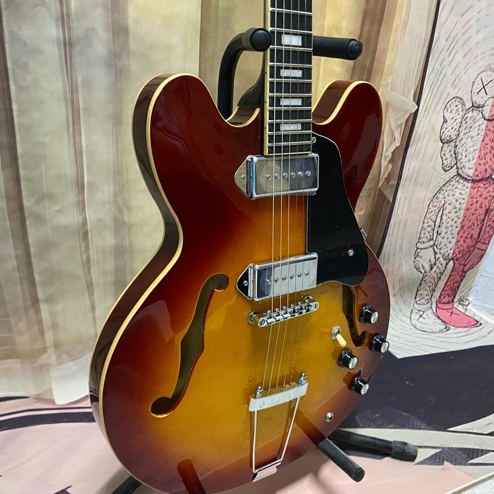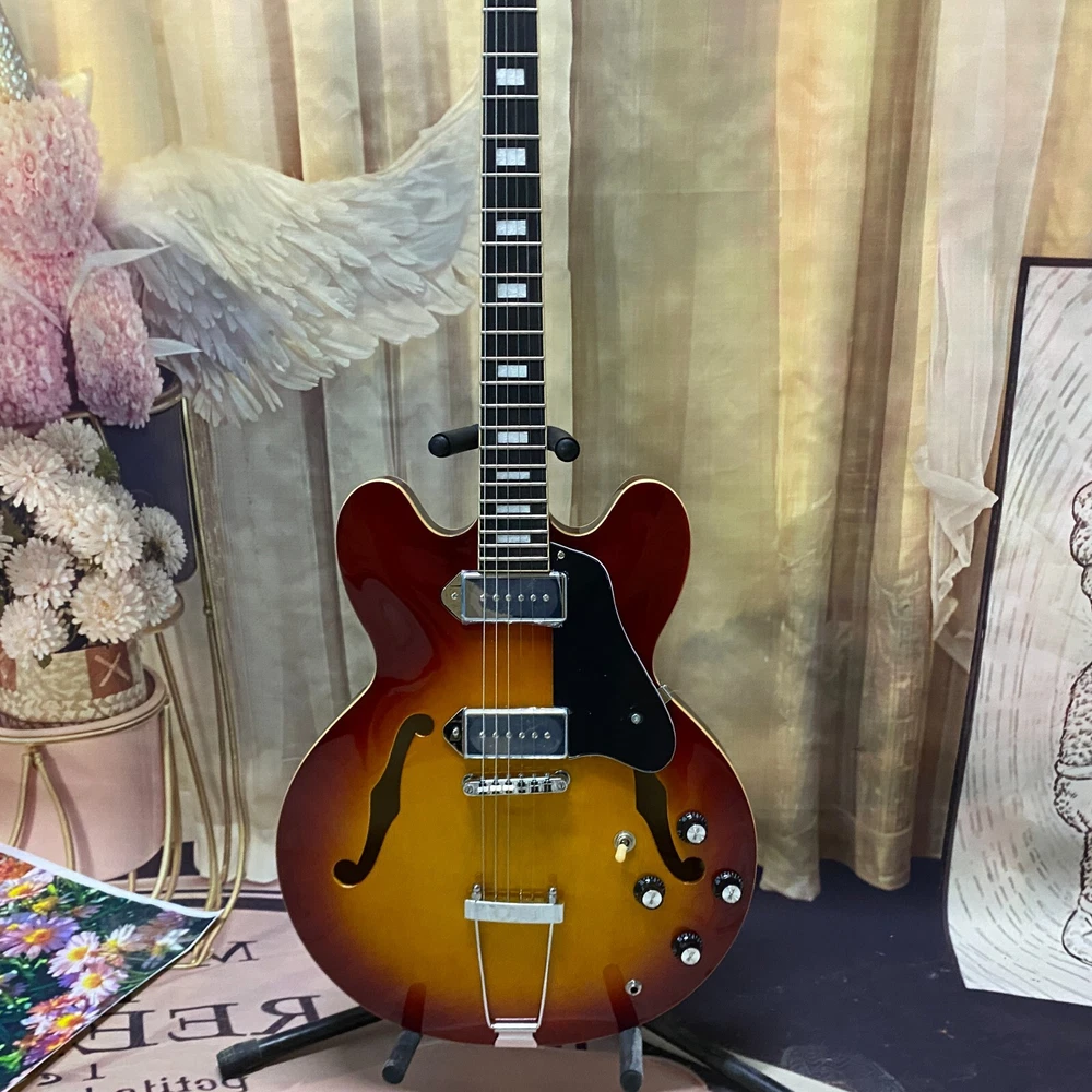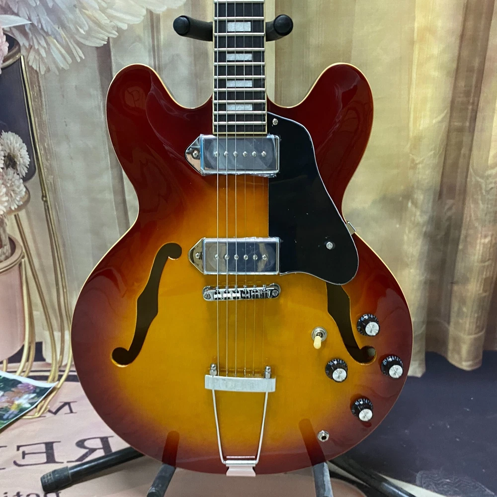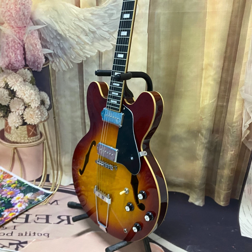 The product is a limited time discount ES335 SUNBURST electric guitar with a semi-hollow body type and a vintage sunburst finish. It features a mahogany neck, rosewood fretboard, 22 frets, and a 6-string string configuration. This professional-level electric guitar is part of the Standard series, perfect for right-handed players looking for a high-quality instrument with a classic design. Made with maple body material and manufactured in China, this guitar offers great performance and style for musicians in need of a reliable electric guitar.
