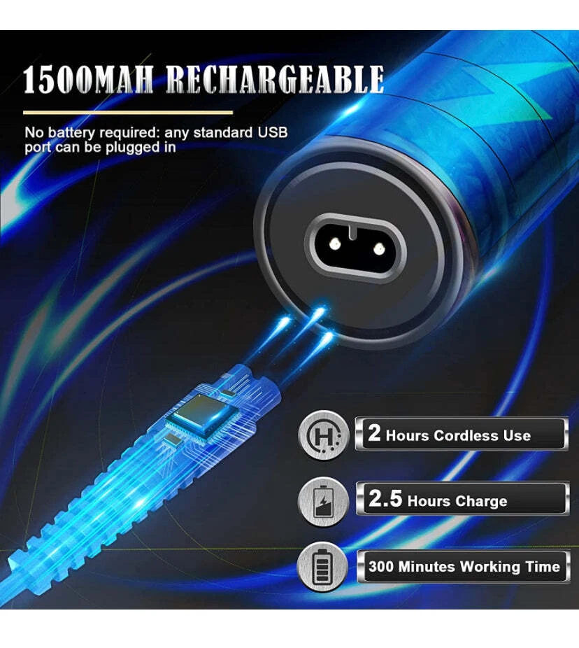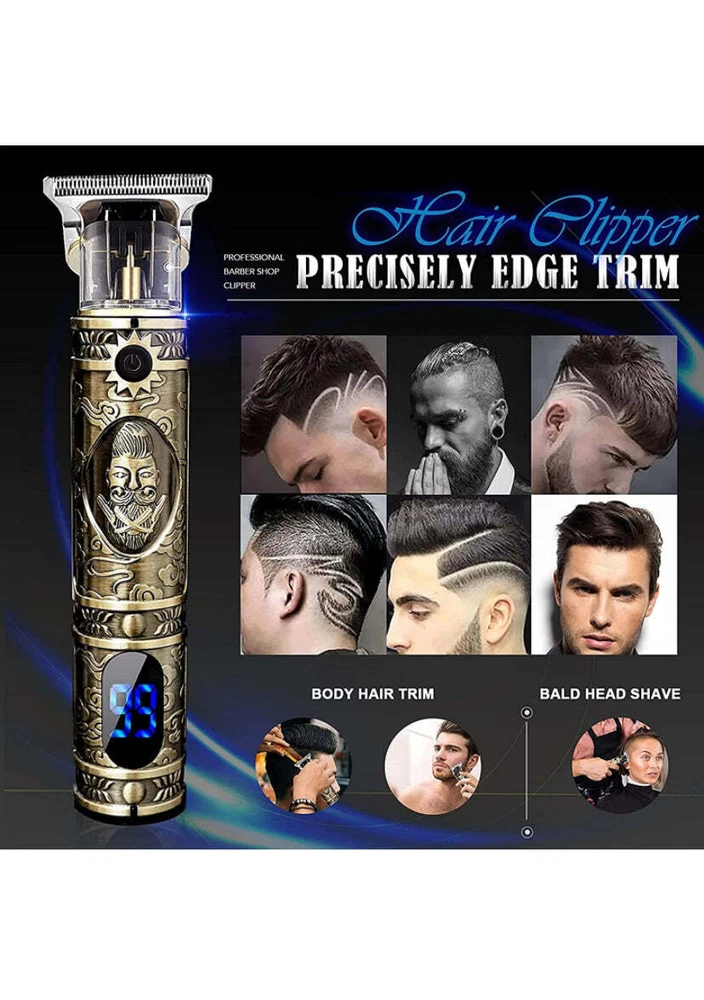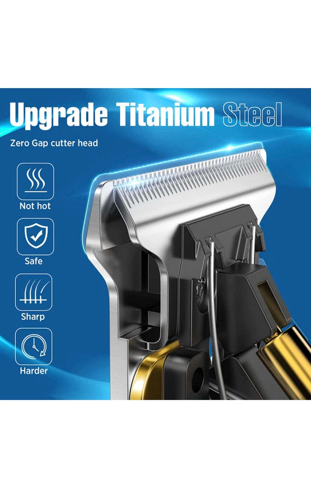 Features & details Premium Titanium Blades: Mens hair clippers designed for smooth, quick, and precise clipping performance on all types of hair with high quality long lasting high-carbon enhanced self-sharpening precision premium titanium stainless T-blades, The tip part adopts safe R outlineing obtuse angle design, the professional edgers clippers satisfy any styling needs,such as lining, sculpt contours, and dry shaving. Incorporated LCD Screen: Our T outliner hair clippers for men with Incorporated LCD Screen can display the power in real time and provide timely charging reminders, for a superior clipping experience. Our multifunctional grooming trimmer can also be used as a facial, beard and body hair trimmer, providing a comfortable grooming experience for men. Powerful Motor with Quiet Technology: Our professional men detailer trimmer is equipped with a powerful 10W motor, which can provide higher speed(6500-7000 rpm) and long-lasting using time. The electric trimmer motor is very quiet (55dB) while delivering a smooth and effortless clipping in no time. It's not only suitable for men, but also suitable for children and pets. Large Capacity Battery: The cordless zero gapped trimmers with built-in 1500mAh rechargeable battery. It only takes 2 hours to fully charge with USB cable and provides up to 180 minutes of working time. The long-lasting cordless hair clipper is very suitable for the barber and the whole family. Please fully charge it before using it for the first time (99 means full charge). Ergonomic Design: The Hair Trimmer weight only 190g and is 1.69 * 6.02in, fit for both men and women ’s hands. T-shaped blade, perfectly engrave the hair lines you want, to be a fashionable stylist for yourself. Our electric pro li outlineing clippers Bladed is waterproof IPX4, t outliners head washable and durable to use. Please wipe clean and keep dry after watering.