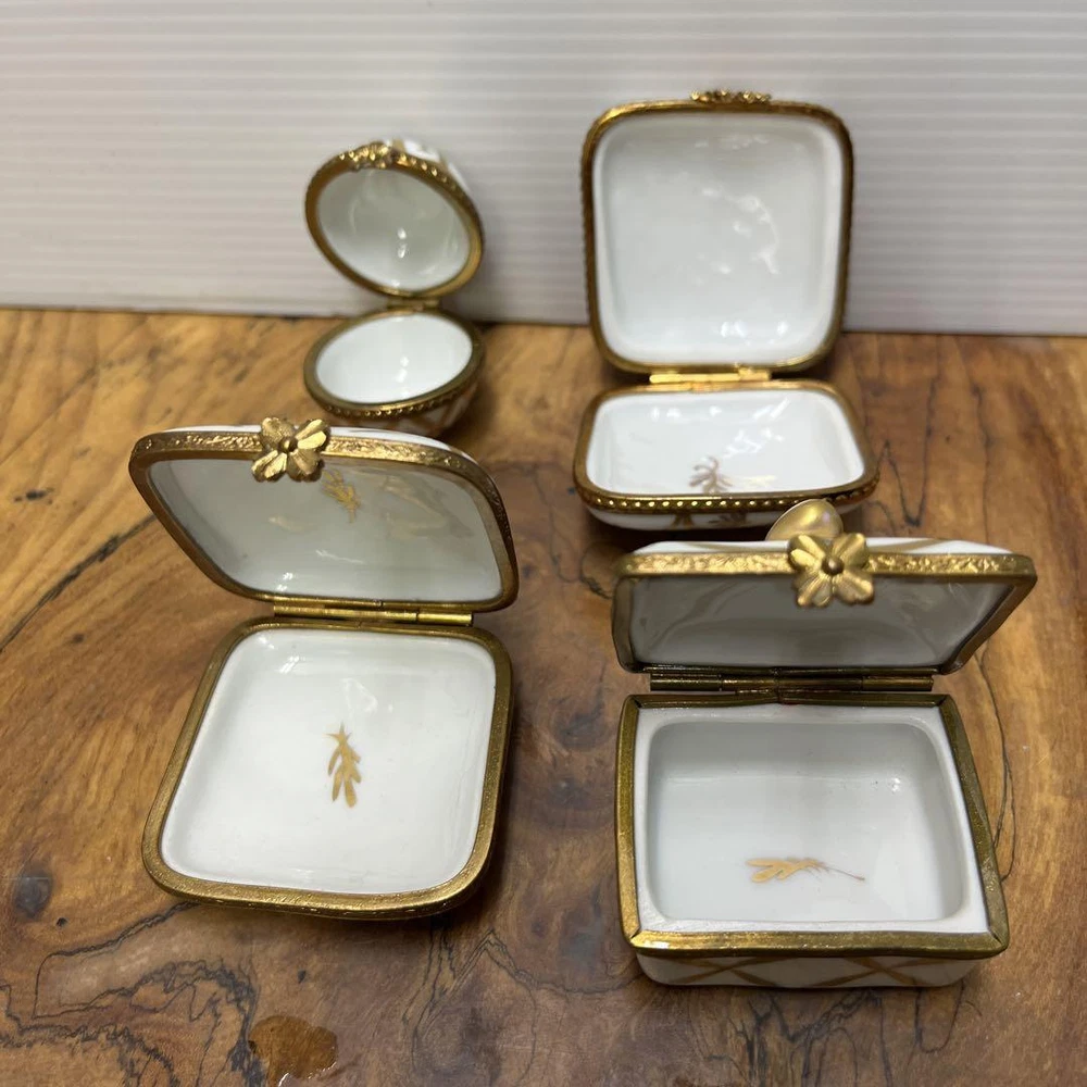 Limoges Pill Case 4-Piece Accessory Set Hand Painted Features Specifications Limoges Pill Case 4-Piece Accessory Set This exquisite vintage Limoges pill case accessory set features a charming hand-painted design. Each piece showcases delicate floral patterns on a white base, adding a touch of elegance to your collection. Features: 4-piece set Hand-painted with small flowers Decorative patterns inside the lids Gold trim accents Beautiful clasp design Condition: This Limoges box is in good condition for its age, with no notable damages such as cracks or chips. However, please note that it has been used over the years, and minor stains, scratches, or blemishes may be present. It is recommended for buyers who appreciate antiques. Rare Find: This set is a rare collectible, perfect for enthusiasts of vintage Limoges items. Item Title Limoges Pill Case 4-Piece Accessory Set Hand Painted Description Messages Thanks for taking a look at my products. We are located in Japan, and we hope you will consider them. We also sell a variety of other products, and we hope you will considerpurchasing them as well. You can also save on shipping costs by purchasing multiple items. If so, please let us know about it. If you are looking for a particular item that is not in my listing, pleasedo not hesitate to contact us. We will look it for you. Contact us International Buyers -Import duties, taxes, and charges are not included in the item price orshipping cost.These charges are the buyer's responsibility. -Please check with your country's customs office to determine what theseadditional costs will be prior to bidding or buying. -These charges are normally collected by the delivering freight (shipping)company or when you pick the item up-do not confuse them for additionalshipping charges. -We do not mark merchandise values ??below value or mark items as “gifts”-USand International government regulations prohibit such behavior. payment We accept PayPal,Payoneer and other payments. Shipping Our shipping methods is mainly using FedEx. Shipping is generally done within 5-10 days or shorter. The tracking number will be sent to you as soon as it is issued. We strictly adhere to handling time in our shipping process. Copyright 2020 Trans solutions at ebay All rights reserved.