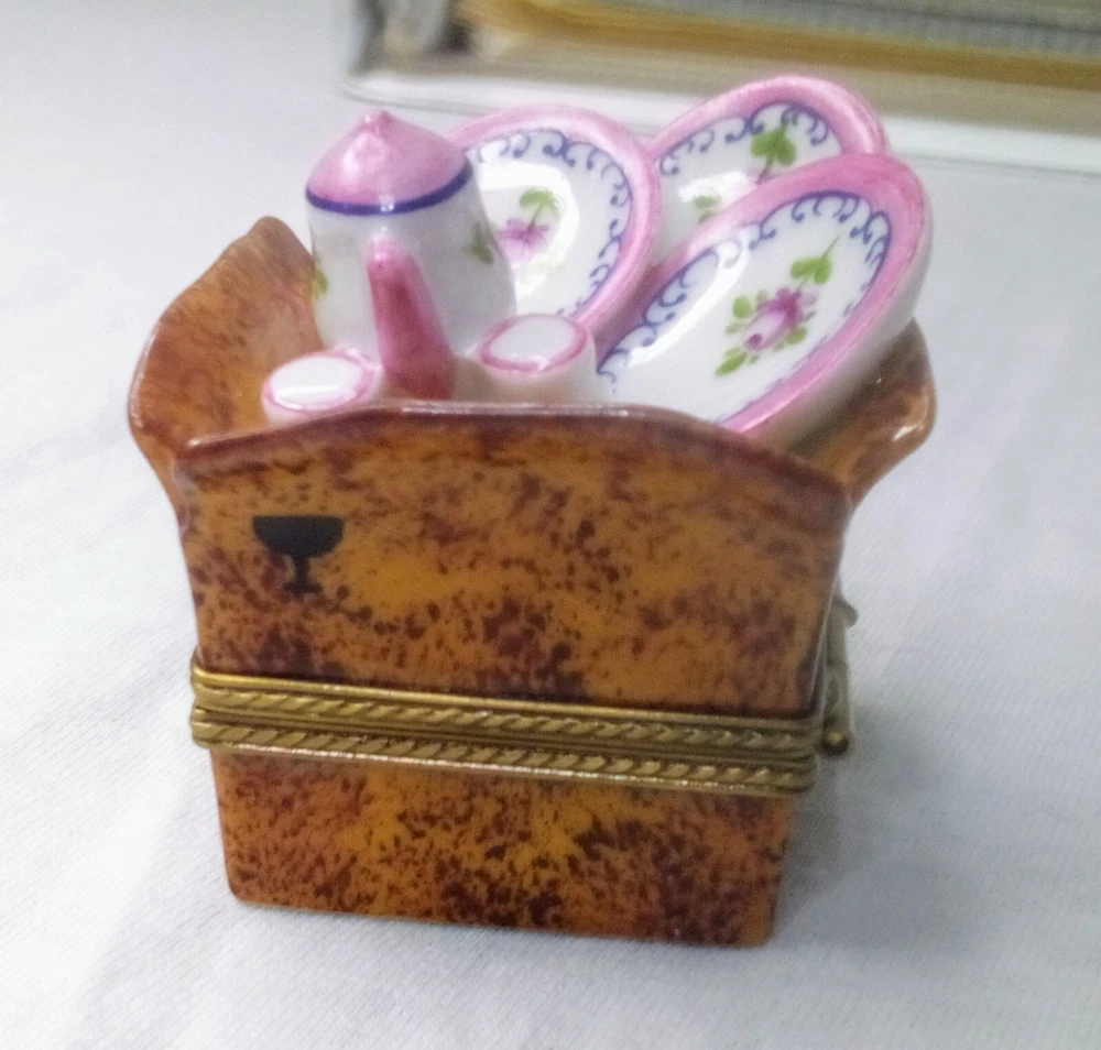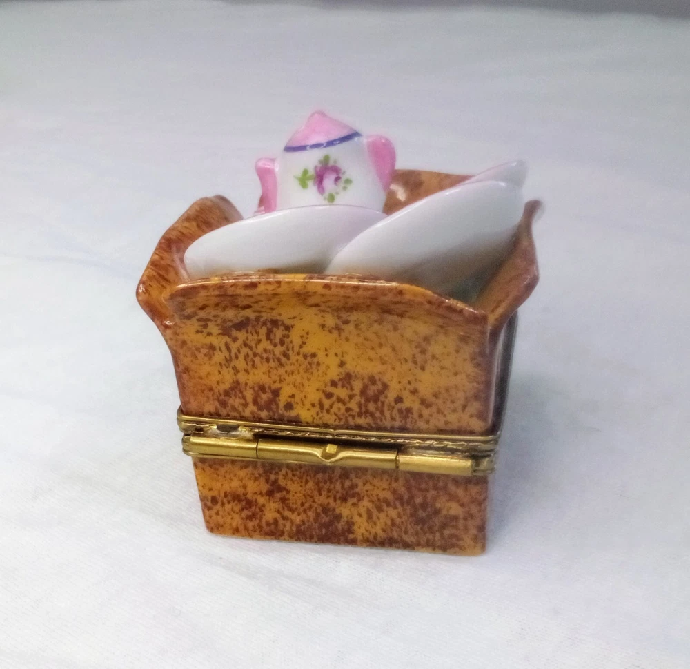 Limoges Tea Set Trinket Box Peint Main Marque Deposee