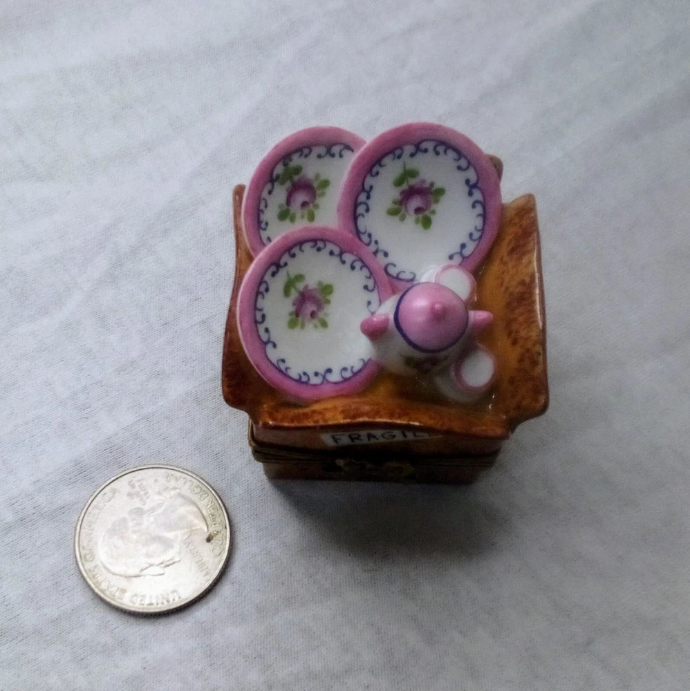 Theme: Food & Drink Material: Porcelain Item Height: 1 3/4" Size: Small Features: Boxed Country/Region of Manufacture: France Type: Trinket Box Brand: Limoges Color: Multicolor Item Width: 1 1/2" at the widest point Original/Reproduction: Original