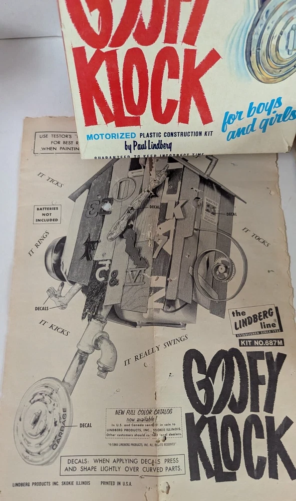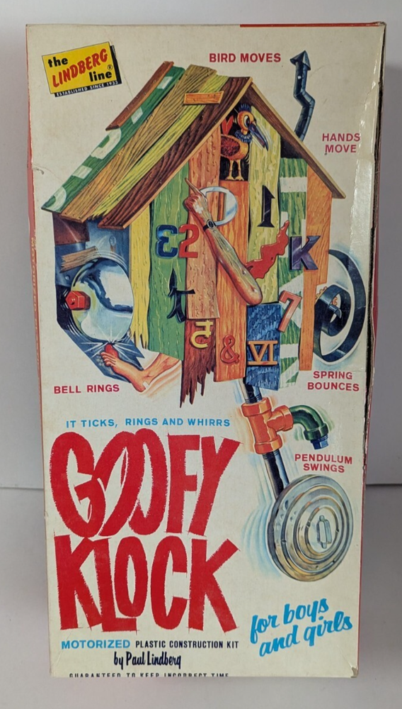 Please ask any questions before making the purchase. (Area B3) Lindberg 1965 687M:198 Goofy Klock Motorized Model Kit With Box. S/H FOR THIS ITEM WILL BE $10.00 IN THE STATES AND WILL INCLUDE DELIVERY CONFIRMATION. ALL SHIPPING IN THE STATES WILL BE DONE USPS, FIRST CLASS OR PRIORITY! WILL SHIP WORLD-WIDE.