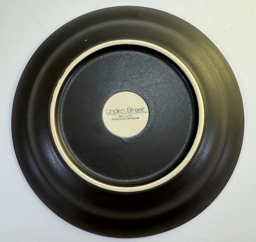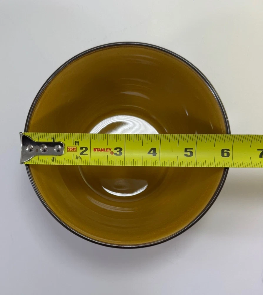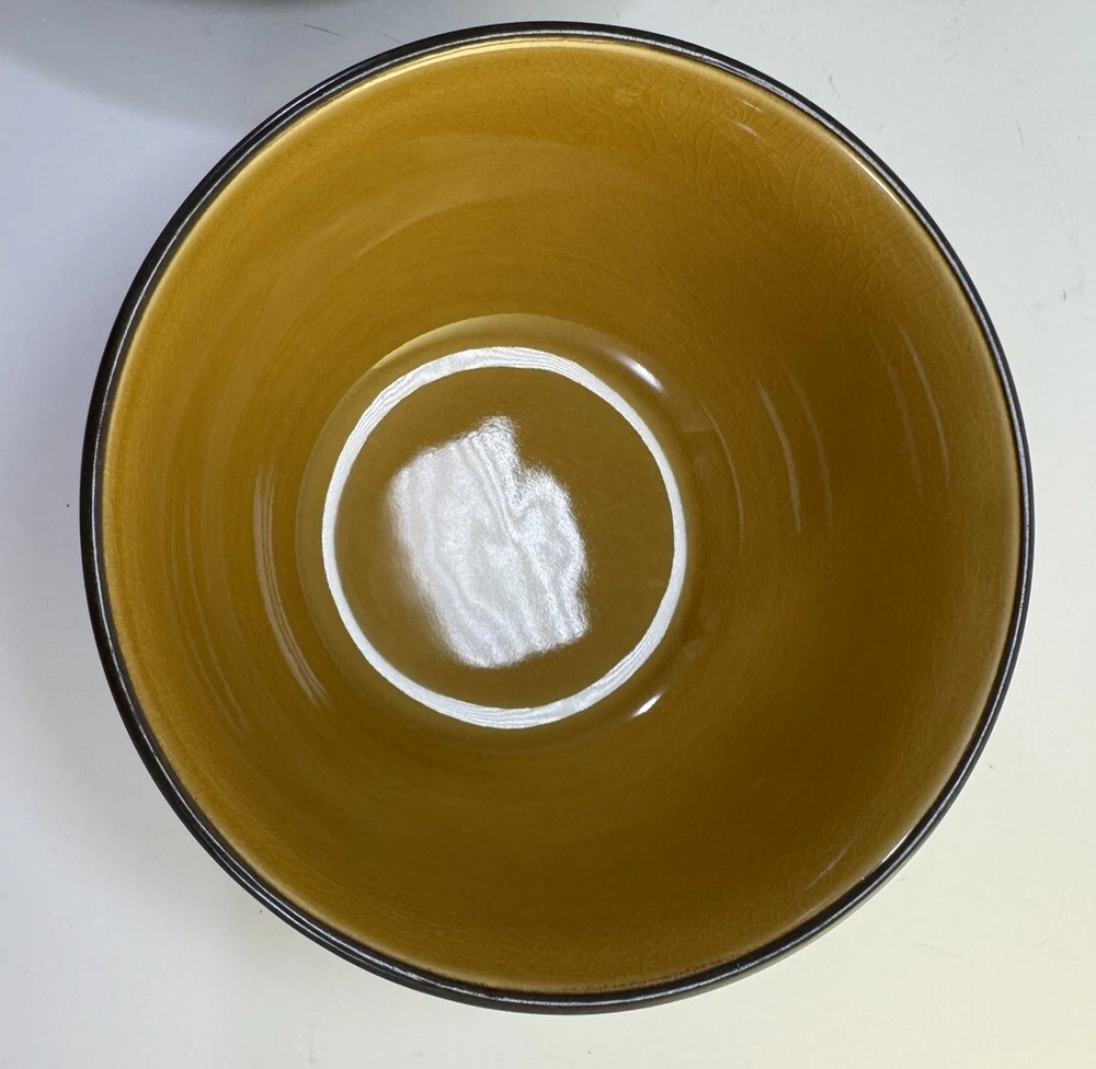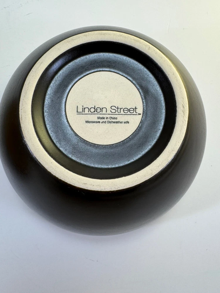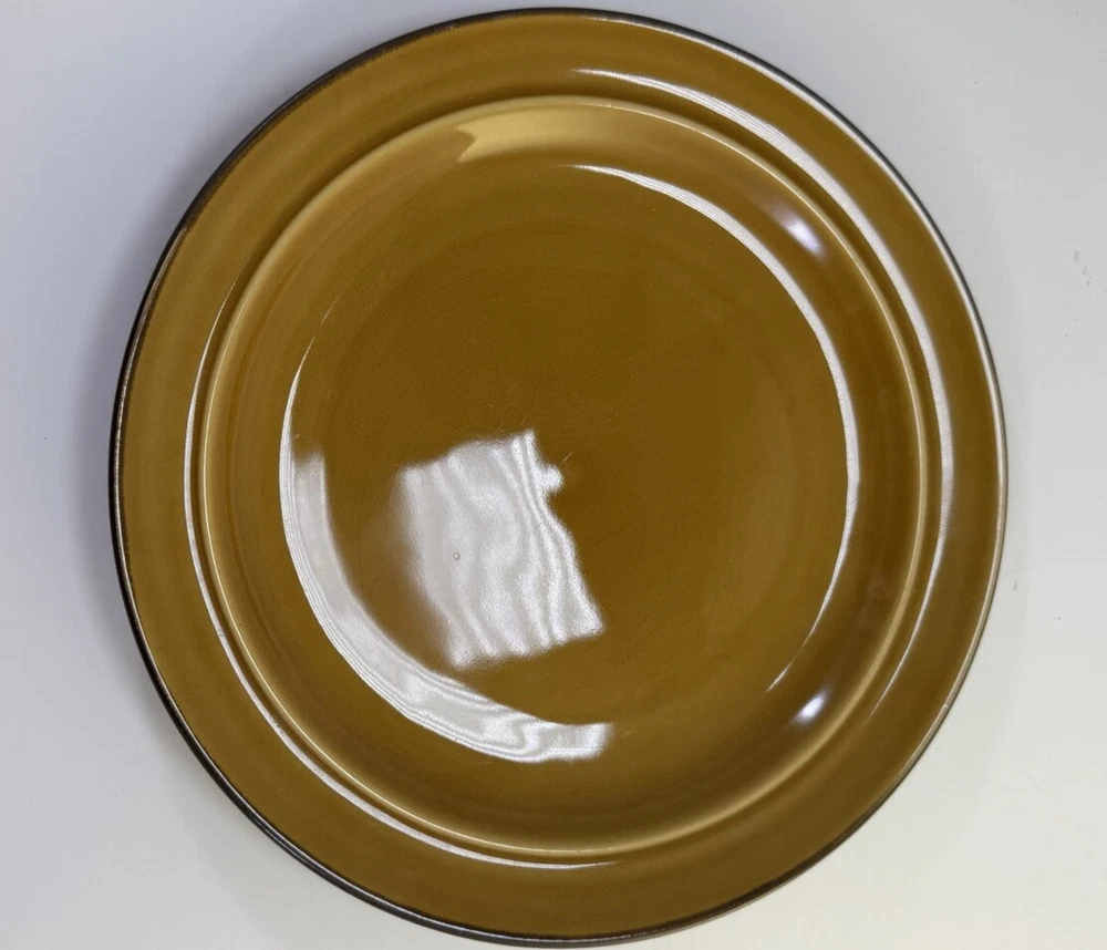 Place setting of Linden Street Hearthridge Honey dinnerware. Set includes 1- 11” dinner plate, 1- 8” salad plate, 1 bowl and 1 mug. Dishes are dark brown on the outside and a nice honey color on the tops/inside. Condition note: there is crazing on all the dishes.