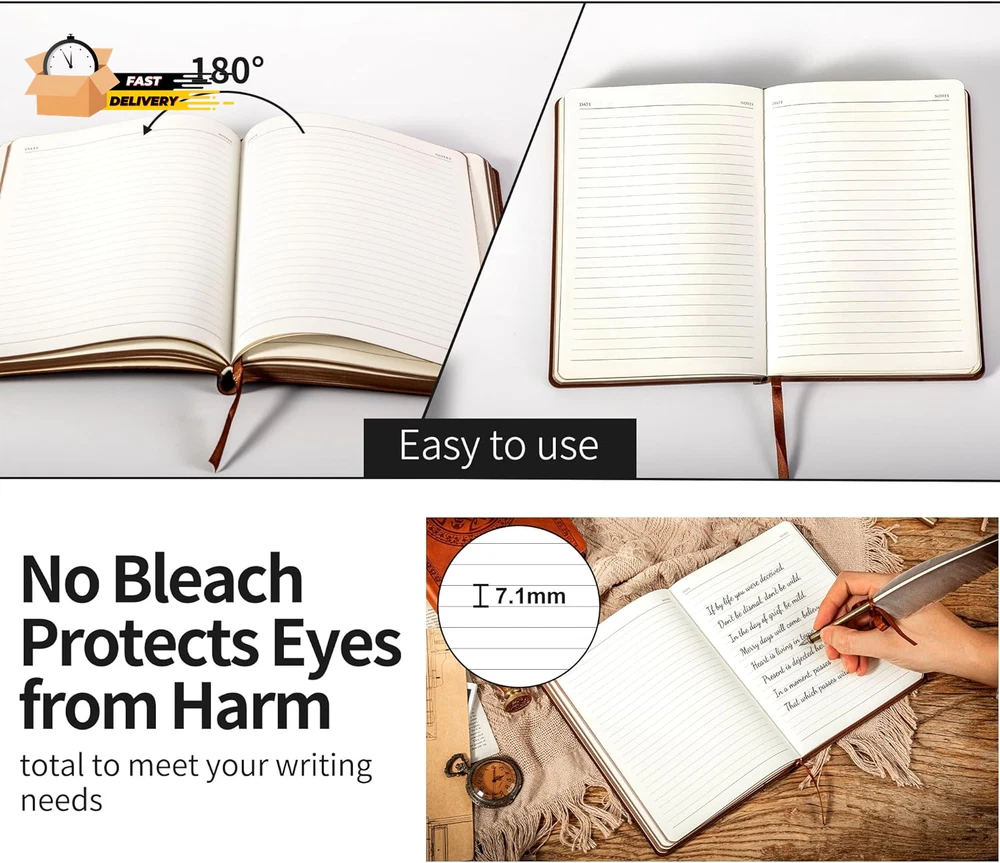 Store New Arrivals Add to Favorite View Feedback Contact Lined Journal for Men Soft Cover Notebook Leather Journals for Writing, 180 Lay Flat Vintage Mens Journal Personal Diary, 5.7'' X 8.3'', Black Description Item model number AZ-22-55K-2 Package Dimensions 9.49 x 8.23 x 0.67 inches Style Softcover Number of Items 1 Color Black Pages 288 Cover Material Faux Leather Sheet Size 5.7 x 8.3 inches Manufacturer Part Number AZ-22-55K-2 Item Weight 13.7 ounces Theme Book Ruling Plain Ruling Type Plain Special Feature Soft cover SOFT LEATHER COVER - This line notebook touches so comfortable as it made of highly praised dual-tone faux leather, with a hand-stitched leather binding for pages that stay firmly in place. So you can have the highest quality, durable luxury notebook. Suitable for students take it for class, also for office workers to record their daily work. COLORFUL COVERS - These five vintage colors of this leather softcover journal are all your good choices. Belonging to business color, share with you at work, creative your mind, vibrant. Take your work and study life to the next level. VINTAGE PATTERN DESIGN - The Vintage pattern designed of this soft cover notebook are well made and look pretty. The cover of this leather journal is made of hand-cut. Daily basic using and perfect packaging for all people as a gift such as kids, girls, friends, lovers etc.They will be so thankful of you for this pretty gift! LINED INNER PAPER - This leather softcover diary has 144 sheets/288 pages of lined papers; The rounded corners of the paper can protect the diary from curving. It can be 180 lay-flat, making it a pleasure to write in. Used 100gsm bleed proof paper, to ensure a quality writing experience. CAGIE BRAND SUPPORT- You can purchase our products with full confidence! If you don't love it due to any quality issues, simply tell us directly. Product Description Soft Cover The soft cover provides a comfortable feel, making your journal a pleasure to touch and handle. Fine Vintage Embossing Elevate the visual appeal with intricate vintage embossing, adding a touch of sophistication to your journal. Inkjet Edge Attain a cohesive look with brown inkjet edges, enhancing your notebook's aesthetic while resisting dirt for lasting appeal. Ribbon Bookmark Stay effortlessly organized with a practical ribbon, providing easy access to your current journal page for seamless navigation. ABOUT US We offer the best prices around on high quality products. Our E-store includes media such as books, movies, music and games while offering electronics, toys, sporting apparel, clothing, tools, general home, garden items and more. SHIPPING We are always working hard to ensure your package arrives as soon as possible. Please understand that some factors like weather, high postal traffic, and the performance of shipping companies are outside of our control. We offer free shipping to the lower 48 states and ship within 2 business days of payment, usually sooner. We do not accept P.O. Boxes. Please provide a physical address. For shipping outside of the continental USA, we only use eBay's Global Shipping Program.The item is shipped to KY and then sent to the rest of the world. International customers are responsible for all duties and taxes. Continue to check out in order to calculate costs for shipping the item to your country. Messages regarding eBay's Global Shipping Program MUST be directed at eBay EXCLUSIVELY. RETURNS We offer a 30-Day Return Policy on items which you are not completely satisfied with. You have the option for a full-refund or an exchange of the item. No returns are available on items shipped outside of the USA. PAYMENT We accept PayPal. CONTACT US This page content is yet to come Please ad us to your favorite seller and visit again later Thank You CUSTOMER SATISFACTION We try our very best to make sure every customer is completely satisfied. If there's a problem, message us! We're happy to help. WE ACCEPT Copyright © 2021 AutoDS. | All Rights Reserved