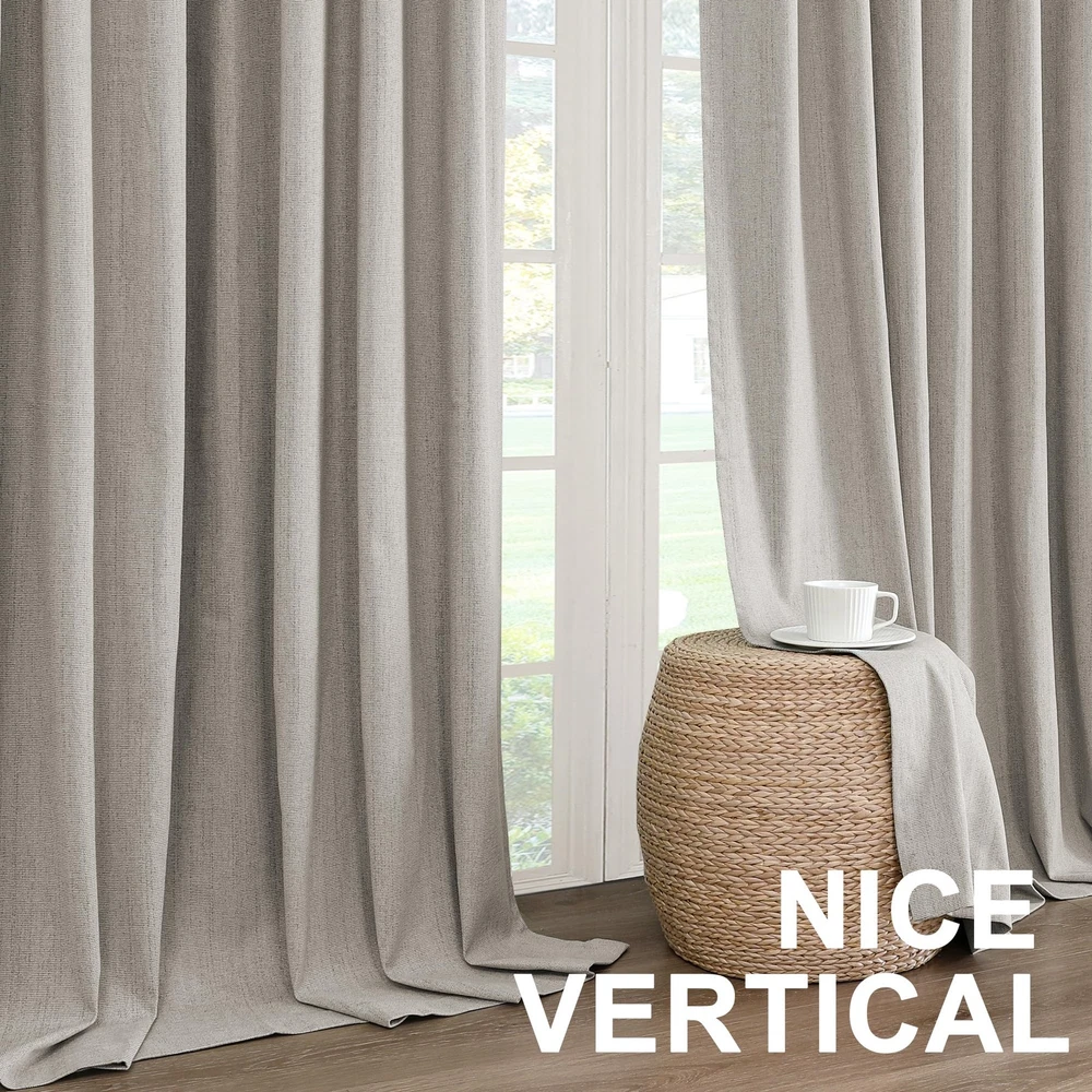 Linen Blackout Curtains Extra Long Living Room Curtains 108 Inches Chenille T...