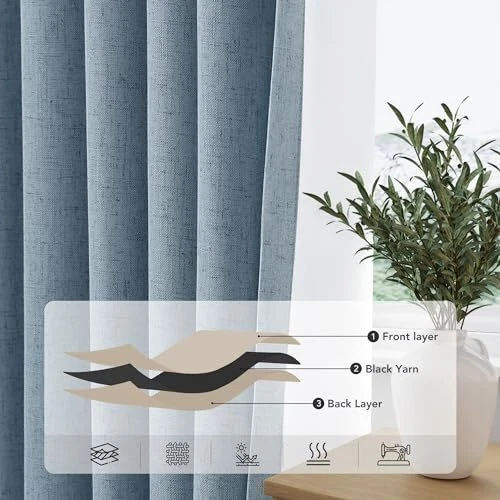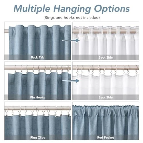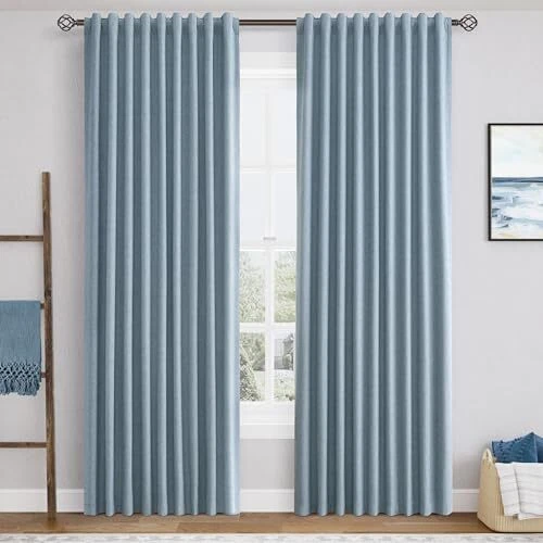 Return Policy Fast Delivery Trusted seller Blue Linen Blackout Curtains for Bedroom 84 Inch Length 2 Panels Set Back Tab Pocket Neutral Farmhouse Living Room Darkening Curtains Track System Thermal Insulated Black Out Drapes 52x84 Product Description MULTIPLE HANGING OPTIONS: 2 panels of blackout curtain per package. Each curtain panel measures 52" wide x 84" long. <1>.Modern Back Tab Look- With hidden back loop hanging on curtain <2>.From the rod pocket for a classic look <3>.Clips Look-Simply using clips on curtain header(clip rings are not included) <4>.Hooks look-using shower hooks, pin hooks, and pleat hooks for easy pull.(hooks are not included) LINEN BLEND FABRIC:These linen blackout curtains are crafted from 30% linen blend fabric and added with 100% blackout coating on the back. The Black out drapes are not only thick, but also texture and drapey. Slub weave fabric has visible linen flecks for a natural, textured and aesthetic look. 100% BLACKOUT: Blackout coating is attached directly to the back of these linen curtains, which definitely can block out 100% bright sunlight to ensure a completely dark room, protect privacy. Thick room darkening curtains for bedroom can effectively isolate noise and provide a quiet and quality sleeping environment. Especially suitable for night shifts THERMAL INSULATED & ENERGY SAVING:The triple weave blackout design not only ensures these linen curtains completely block out sunlight, but also blocks excess heat in the summer and reduces indoor heat loss in the winter to achieve a good temperature balancing effect. Isulated blackout curtains help you realize energy savings and lower budgets VERSATILE USE: These durable elegant linen curtain panels will decorate your windows and rooms with new great effect. Widely use for bedroom, living room, patio, room divider, nursery, laundry room, patio, create natural and comfortable sweet family scene. Shipping Returns Payment Shipping Shipping is FREE to all addresses other than APO/PO boxes in the lower 48 states. All our stock ships from US-based warehouses. Shipped via USPS or UPS (depending on location and package weight) Unless stated otherwise, all orders will ship within 24-72 hours of your payment being processed. Check our feedback to see the great reviews of FAST shipping we offer. Returns Seller does not accept returns Payment We currently accept payment via eBay managed payments only. Once payment is cleared, we will dispatch your shipment within 1-3 business days. Please refer to the "Shipping" tab for more information regarding shipping speed to your destination.