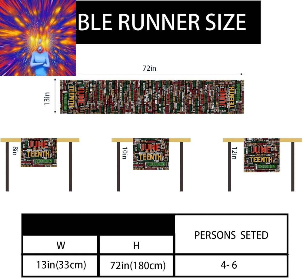 Store New Arrivals Add to Favorite View Feedback Contact Linen Juneteenth Table Runner Tablecloth Black Red Yellow African American Kwanzaa Decorations and Supplies for Home Office 13X72 Inch Description Style Minimalist Style Name Minimalist Color Black Material Linen Material Type Linen Product Care Instructions Machine Wash Size 13 x 72 inch Item Dimensions L x W 72"L x 13"W Linen fabric & Durable:Made of Linen fabric,with the texture of natural fabric texture, Soft and durable.Meanwhile,The Linen fabric's unique anti-scalding properties also protect your desk from the hot pan. Suit your Table Perfectly:Size of this table runner is 13 x 72 inches(about33cm*180cm), Suitable for a table that can accommodate 4-6 people. Clear and Bright printing:Bright table runner can add warm and lively atmosphere to your table.Our table runner uses thermal transfer technology, get real and vivid colors. Unique design just for you:Each table runner is designed by professional designers and after many modifications and color matching to ensure the best home decoration effect. Enhance the Festive atmosphere:This beautiful runner can add a touch of splash to your festive parties,dining room,living table decor and increase atmosphere of festive. Product Description ABOUT US We offer the best prices around on high quality products. Our E-store includes media such as books, movies, music and games while offering electronics, toys, sporting apparel, clothing, tools, general home, garden items and more. SHIPPING We are always working hard to ensure your package arrives as soon as possible. Please understand that some factors like weather, high postal traffic, and the performance of shipping companies are outside of our control. We offer free shipping to the lower 48 states and ship within 2 business days of payment, usually sooner. We do not accept P.O. Boxes. Please provide a physical address. For shipping outside of the continental USA, we only use eBay's Global Shipping Program.The item is shipped to KY and then sent to the rest of the world. International customers are responsible for all duties and taxes. Continue to check out in order to calculate costs for shipping the item to your country. Messages regarding eBay's Global Shipping Program MUST be directed at eBay EXCLUSIVELY. RETURNS We offer a 30-Day Return Policy on items which you are not completely satisfied with. You have the option for a full-refund or an exchange of the item. No returns are available on items shipped outside of the USA. PAYMENT We accept PayPal. CONTACT US This page content is yet to come Please ad us to your favorite seller and visit again later Thank You CUSTOMER SATISFACTION We try our very best to make sure every customer is completely satisfied. If there's a problem, message us! We're happy to help. WE ACCEPT