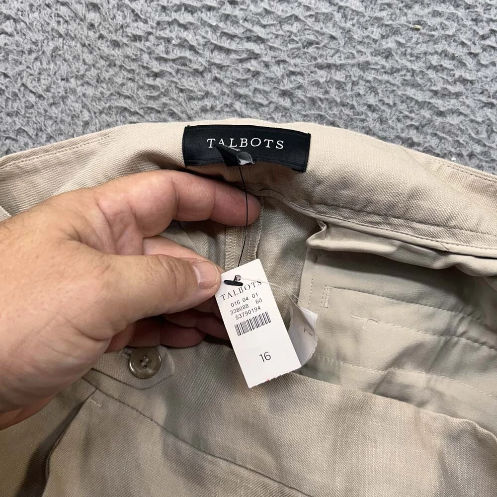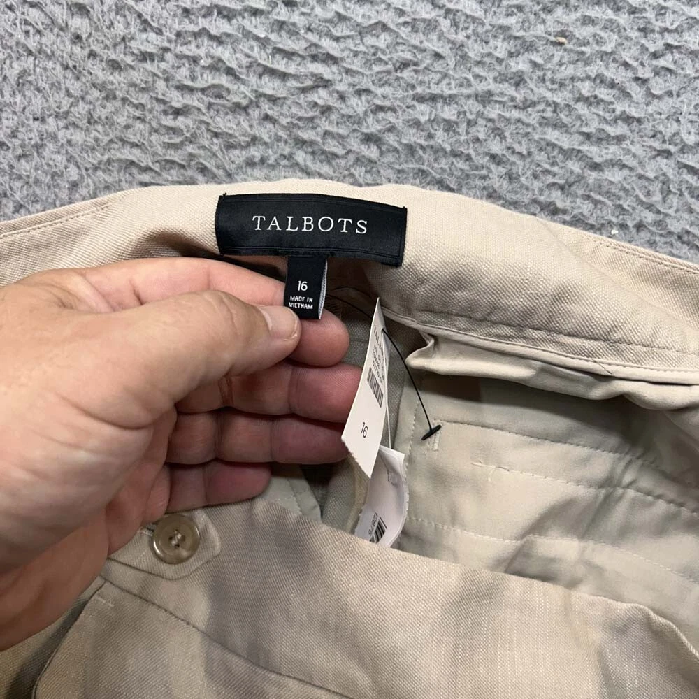 Pattern: Solid Color: Beige Material: Linen Blend Size Type: Regular Fabric Type: Woven Brand: Talbots Leg Style: Straight Department: Womens Vintage: No Occasion: Casual Style: Ankle Inseam: 31 in Type: Pants Garment Care: Machine Washable Size: 16 Closure: Button
