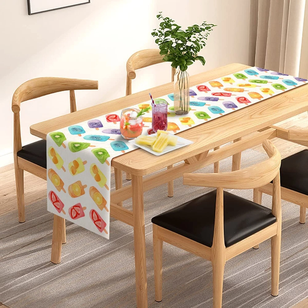 Linen Watercolor Popsicle Table Runner Ice Cream Summer Fruit Baby Shower Kitchen Dining Room Home Decoration Description and features Material: Made of linen. Rustic, durable and reusable. Size: Width*length-13inches*72inches(33×183cm), appropriate for tables that can seat 4-6 people. Quality material and fine workmanship, easy to clean and can be washed by hand, you can use it many times. Ideal for your popscle themed party dinner table, kitchen table, mantle, fireplace, chest, TV stand, wine cabinet etc.decoration. And also great for family daily dinner. Bright color and vivid pattern add a fresh natural look to your table decor. Return Policy ⦿ All our products come with a 30-Day Return Policy. If you would like to return your item and you are within 30 days of the purchase, and it is still in its original condition, you can return the item by contacting us through eBay messaging. ⦿ If you are not 100% satisfied, please let us know the Detailed Problem,We will give you a 100% satisfactory solution ⦿ If you received an incorrect, damaged, defective, or item not as described, contact us for a partial/full refund or replacement on our cost. ⦿ Free Shipping and Free Return 30-Days Money Back Guarantee. ☎ For all returned products, buyers MUST contact us for the returning address. Shipping ⦿ We do not ship to a different address. we will ship to the address you provide on the ebay only. Please check your address before purchase. ⦿ It should take 2-4 business days for the product to reach your destination. ⦿ If the product doesn't reach your destination within the time limit, please give it an additional 1-2 business days in case of postal delays and/or possible technical issues. ⦿ We use a selection of shipping services such as UPS, FedEx, USPS etc. ⦿ We ship only to the 48 contiguous states of America. We do not ship to Hawaii, Alaska, US Protectorates, APO/FPO addresses. Local pickups are not offered. ☎ If it takes any longer than that, please do not hesitate to contact us to resolve the issues. Contact us ☎ Please contact us via eBay message. And your message will be replied within 1 business days. For any queries, please feel free to contact us, we will get back to you as quickly as possible. Customer 100% satisfaction is our first priority and goal. We are always working hard for maintain high standards of excellence and resolve your problem in best way. So your POSITIVE FEEDBACK is very important. If you have any problem of the item, please feel free to let us know before leaving your feedback. We will try our best to solve your problem. About us We are here to give you quality products, competitive pricing and amazing service in order to make sure you get the best deal online, Thank you for your business and the opportunity to serve you.