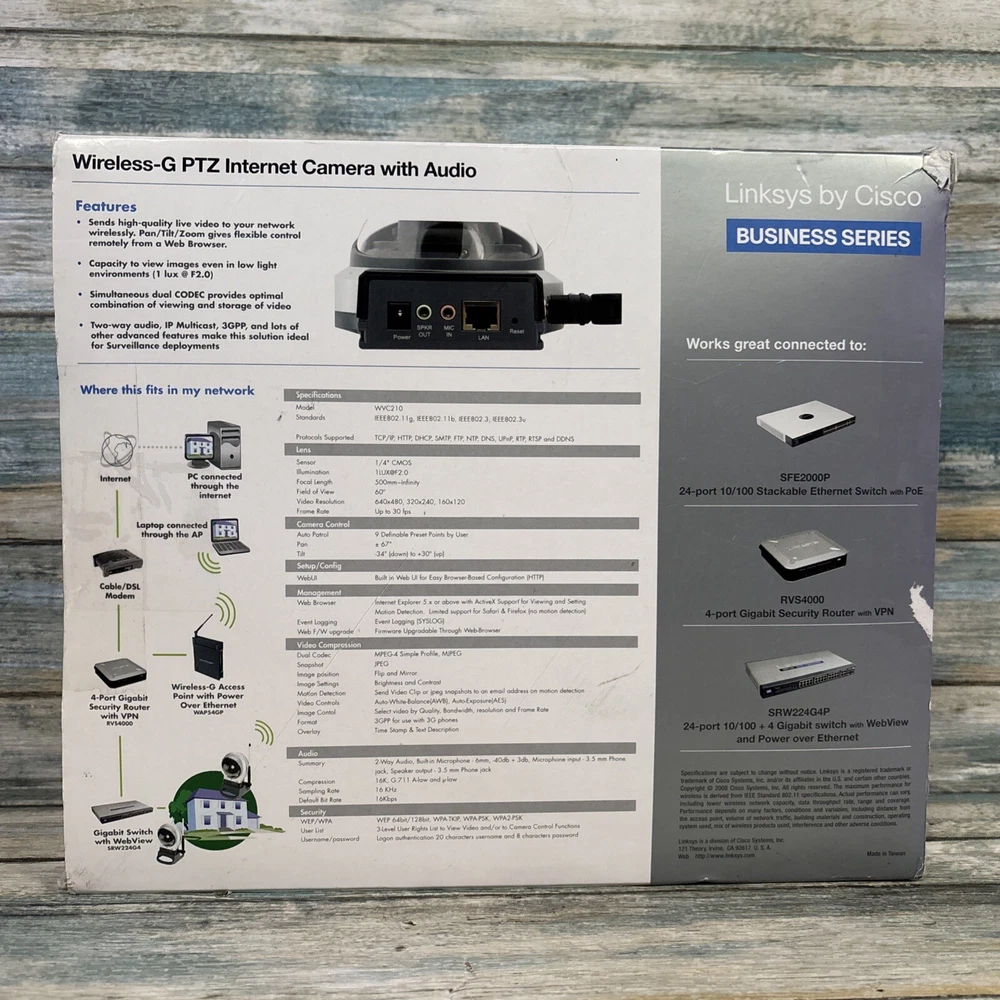 Surveillance Technology: IP/Network Connectivity: Wireless Model: WVC210 Type: Surveillance Camera Brand: Cisco