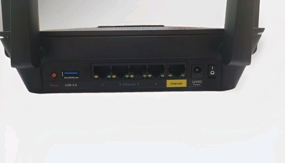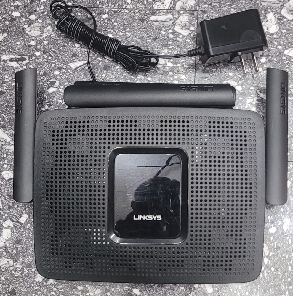 Linksys MR9000 AC3000 Tri-Band WiFi 5 Router. This high-performance router delivers combined speeds up to AC3000 with tri-band technology, ideal for streaming, gaming, and multiple connected devices. Features MU-MIMO technology for efficient multi-device performance and 4 Gigabit Ethernet ports for wired connections. Includes: • Linksys MR9000 Router • 4 External Antennas • 12V Power Adapter Condition: Pre-owned. Router shows light cosmetic wear including visible surface scratches on the top glossy panel. Antennas and ports appear intact. Please review all photos carefully for exact condition. No original box or manuals included. Great upgrade for home or small office network setups requiring strong coverage and reliable speeds. FAST SHIPPING: All orders will be processed and shipped out the following day, excluding Sunday
