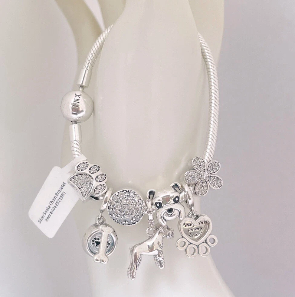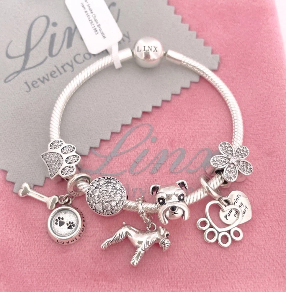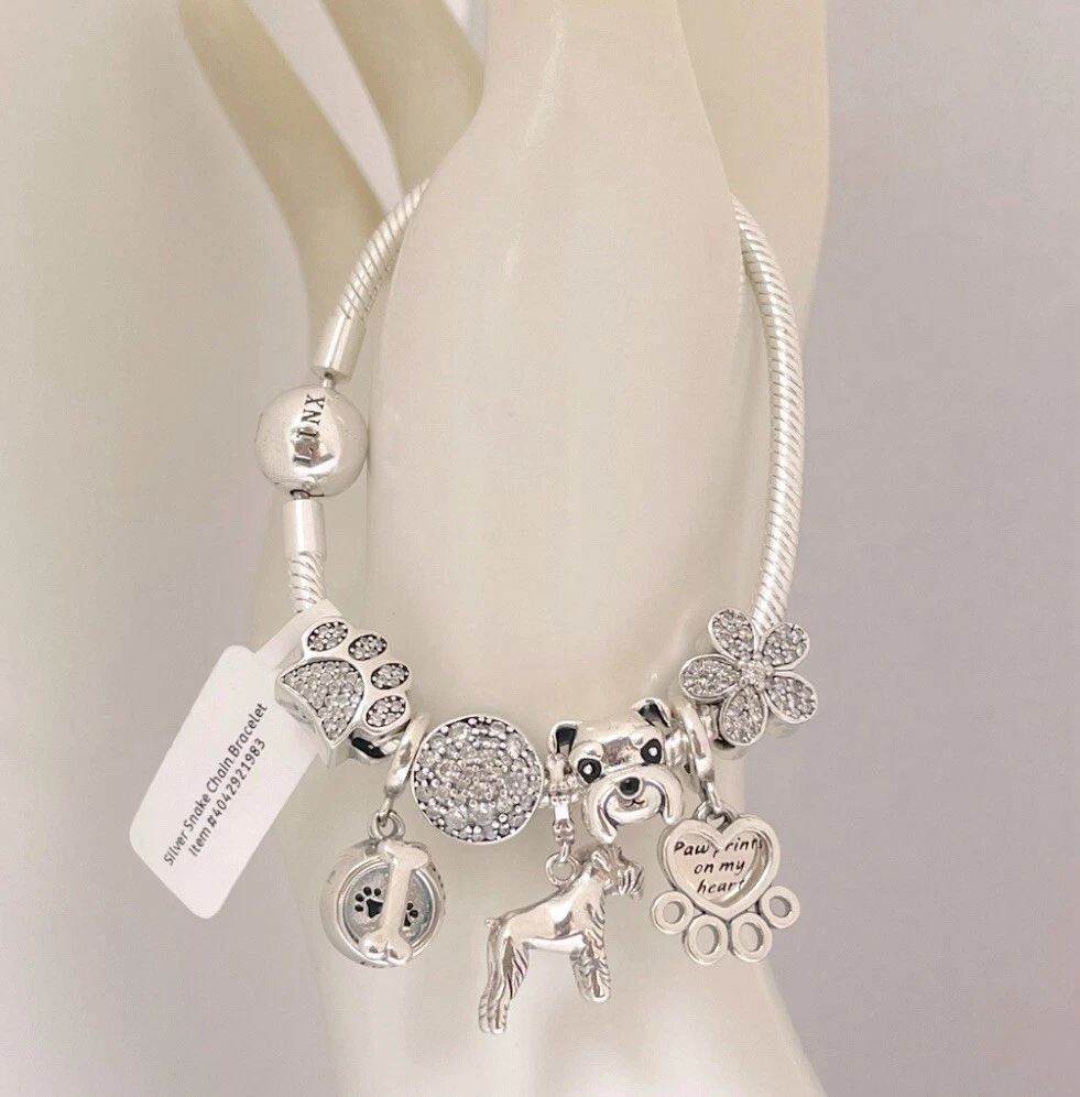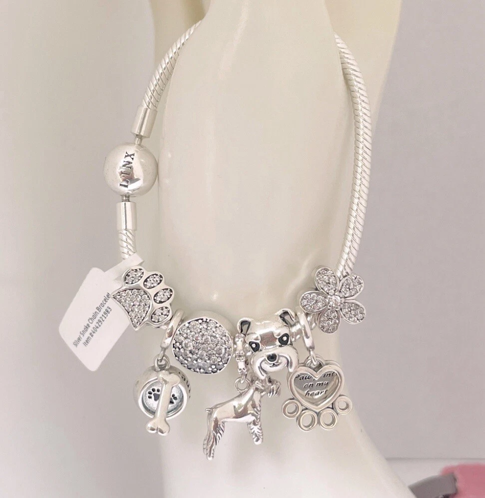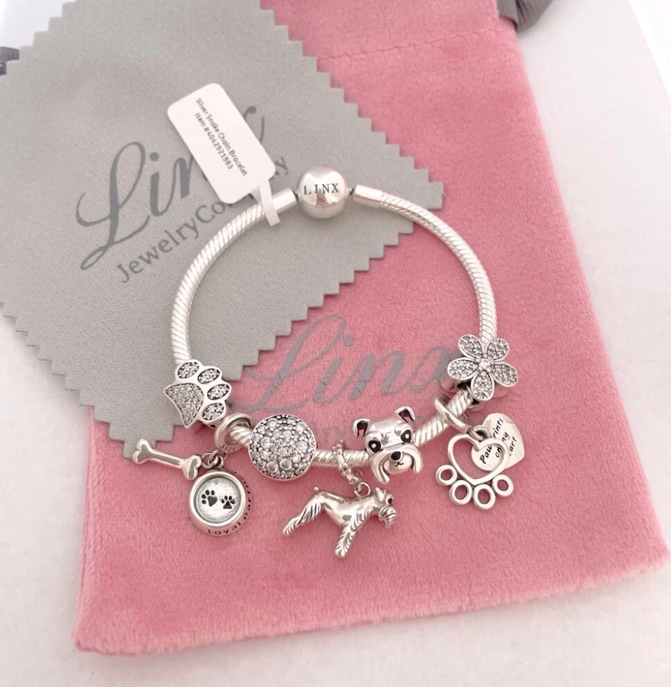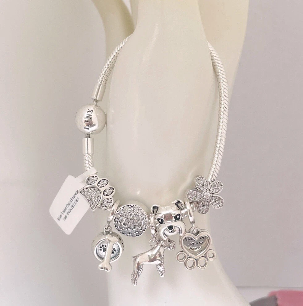 Linx Silver Snake Chain Bracelet with Schnauzer Themed Charms