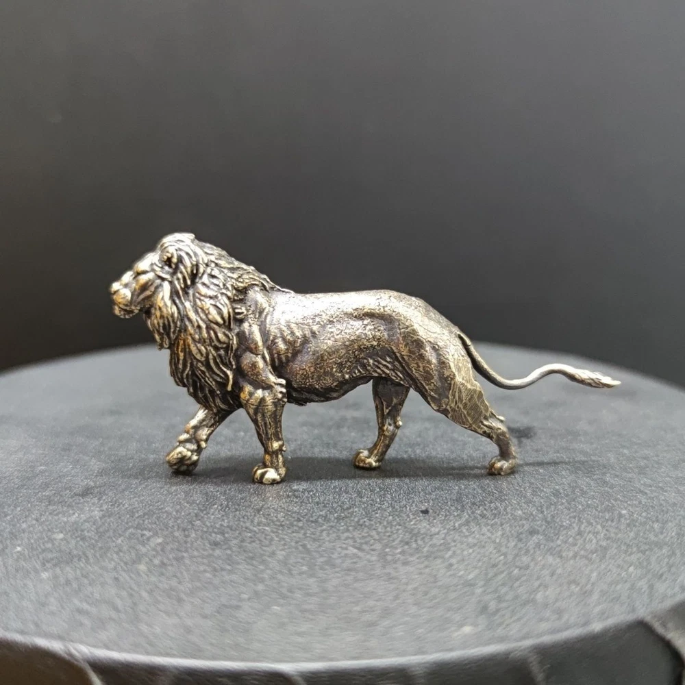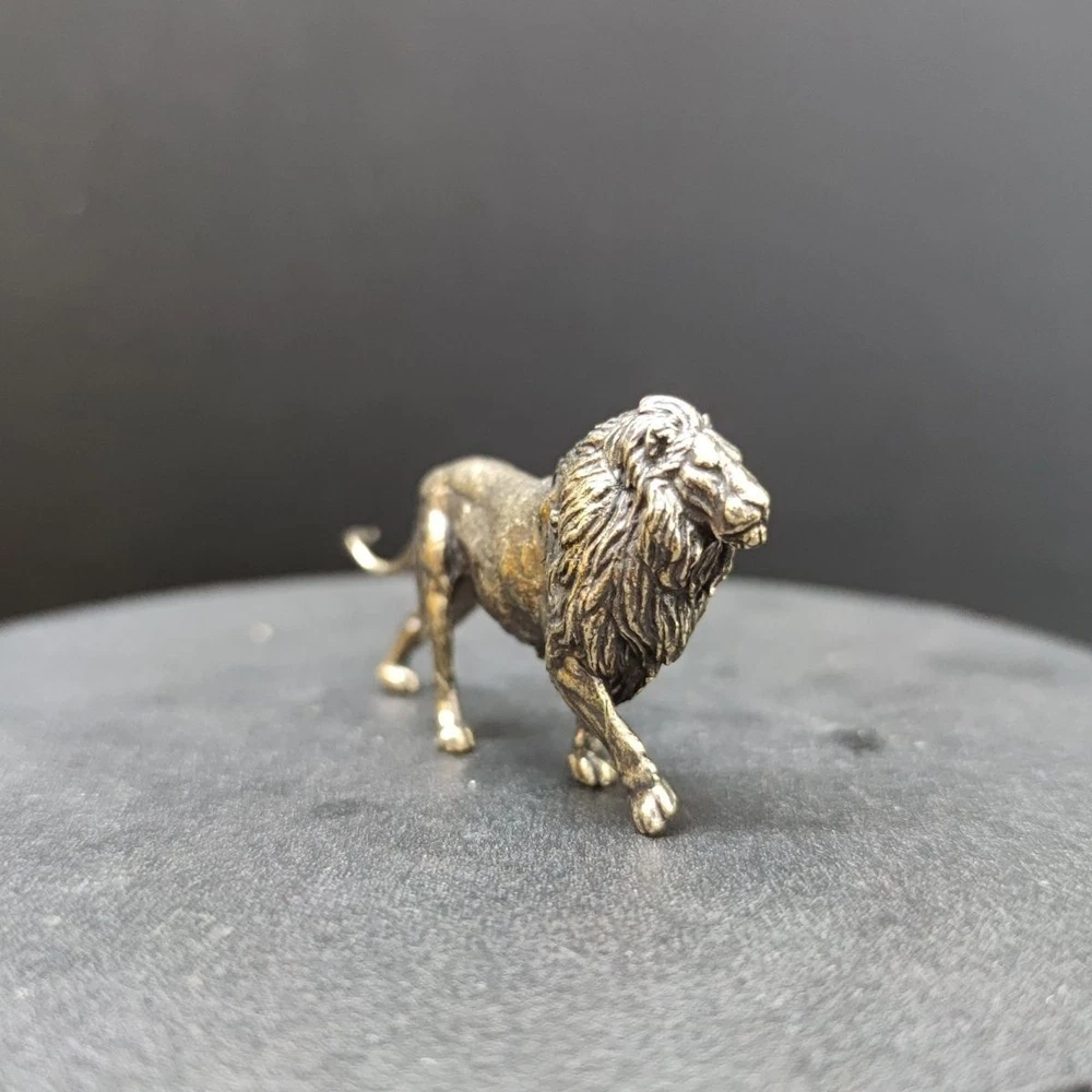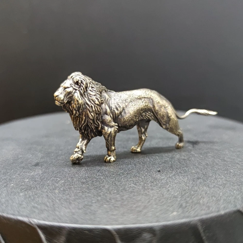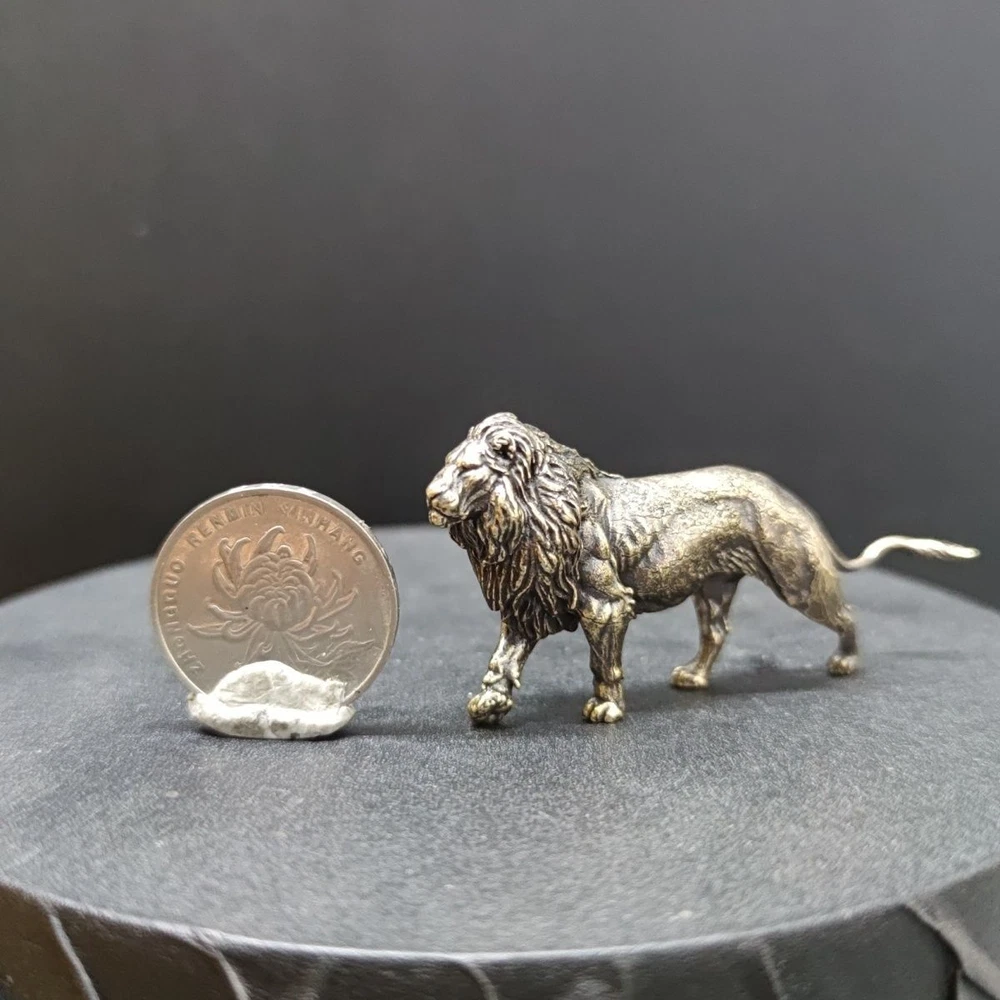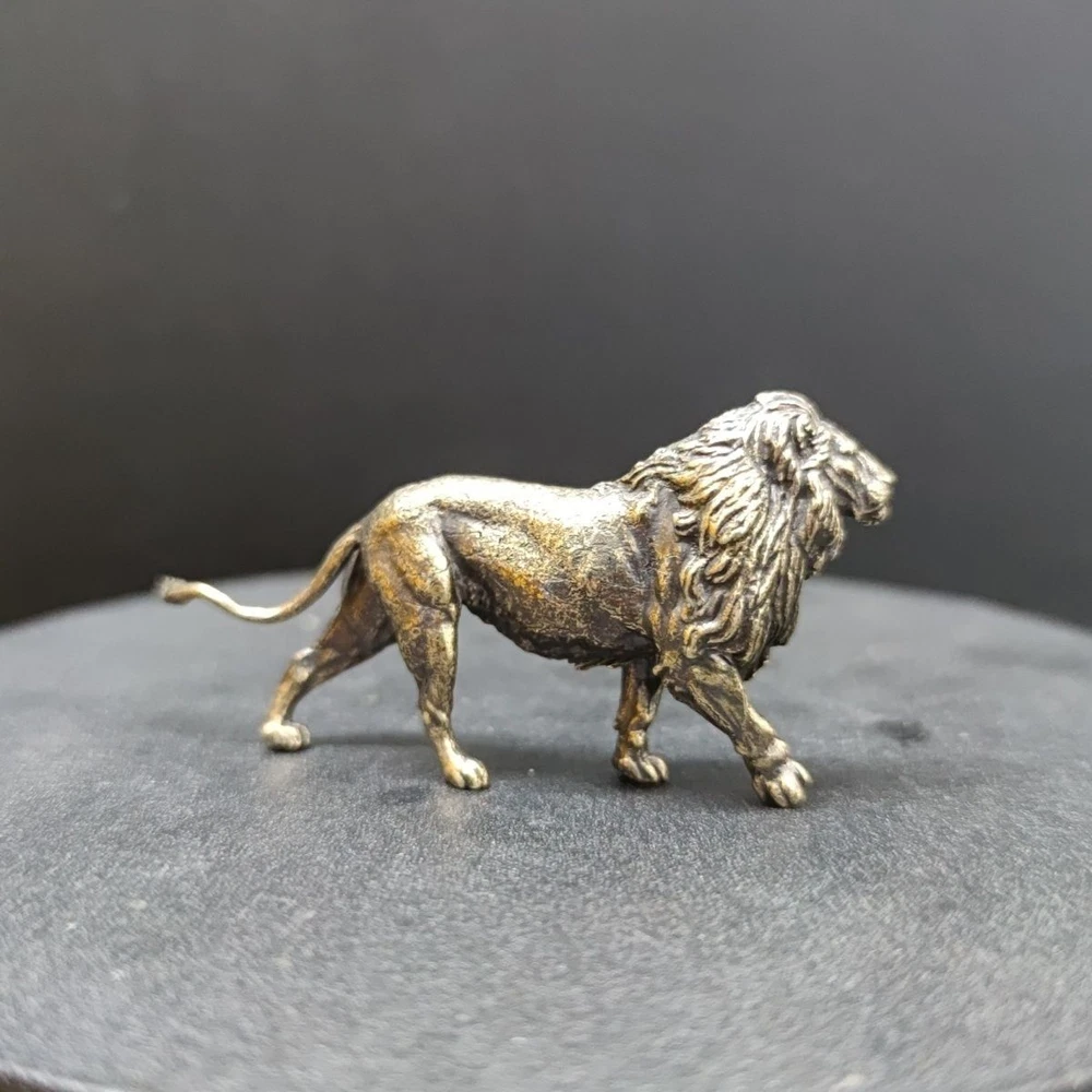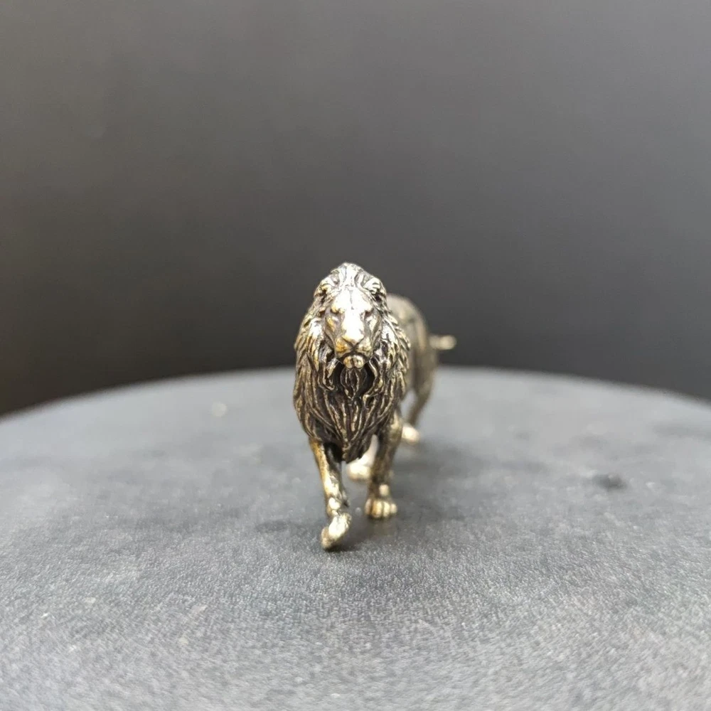 Lion small copper ornaments brass solid lion king tea pet keychain micro carving