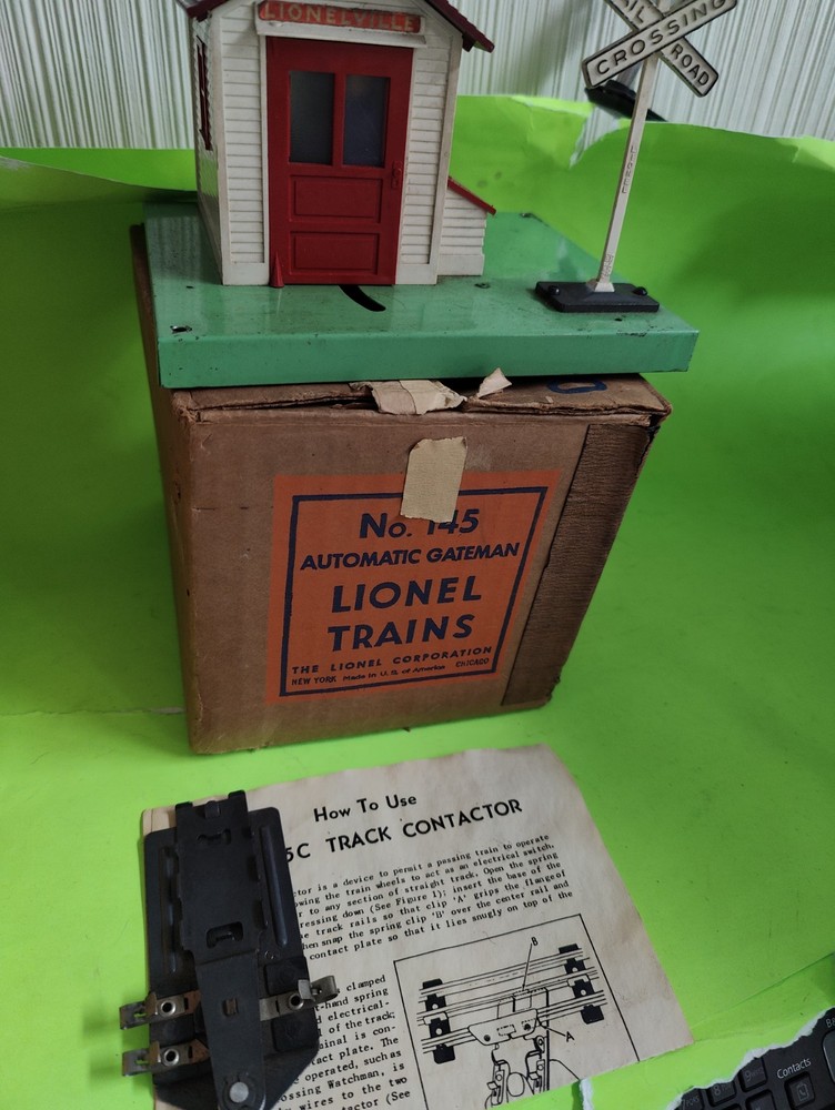 Lionel 145 Gateman With Box Instructions And Connector. Condition is Used. Shipped with USPS Ground Advantage.