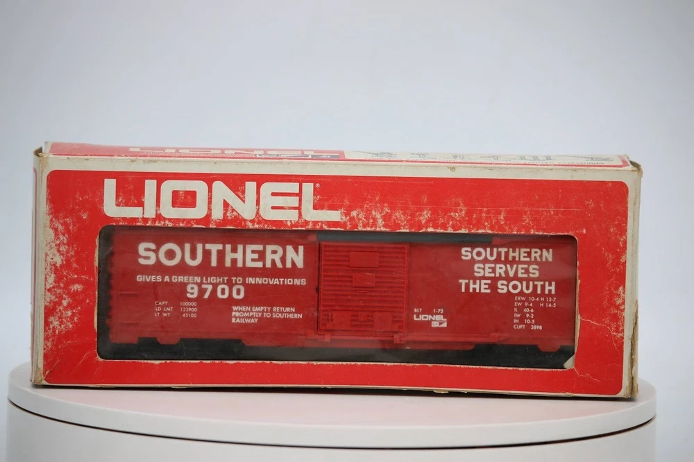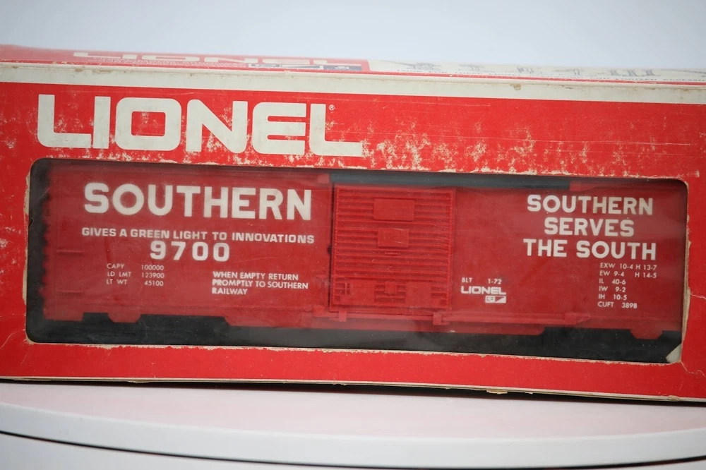 Lionel 6-9700 Southern "Serves the South" Boxcar MPC ERA Red Plastic 1:48 Scale PLEASE READ BEFORE PURCHASING Condition: Please review all photos carefully for details on the item?s condition. Photos are part of the description, and any notable flaws will be highlighted. Combined Shipping: If purchasing multiple items, request a revised invoice before paying to ensure accurate combined shipping costs. eBay?s system may not calculate this correctly, leading to overcharges. Lighting Disclaimer: Photos are taken under bright lighting to highlight details, which may cause slight variations in color or hue depending on your lighting. If you need additional photos (e.g., in natural light) or more details, please ask before purchasing. As-Is Items: Items marked ?AS-IS? are untested and sold at a discount. These items may work but could also be better suited for parts. Refunds will cover only the item price, not shipping. What?s Included: Only the items shown in the photos and described in the listing are included in the purchase. We strive to describe items thoroughly and provide clear photos. If you have any questions or concerns not addressed in the listing, feel free to ask before purchasing. Thank you for shopping with us!