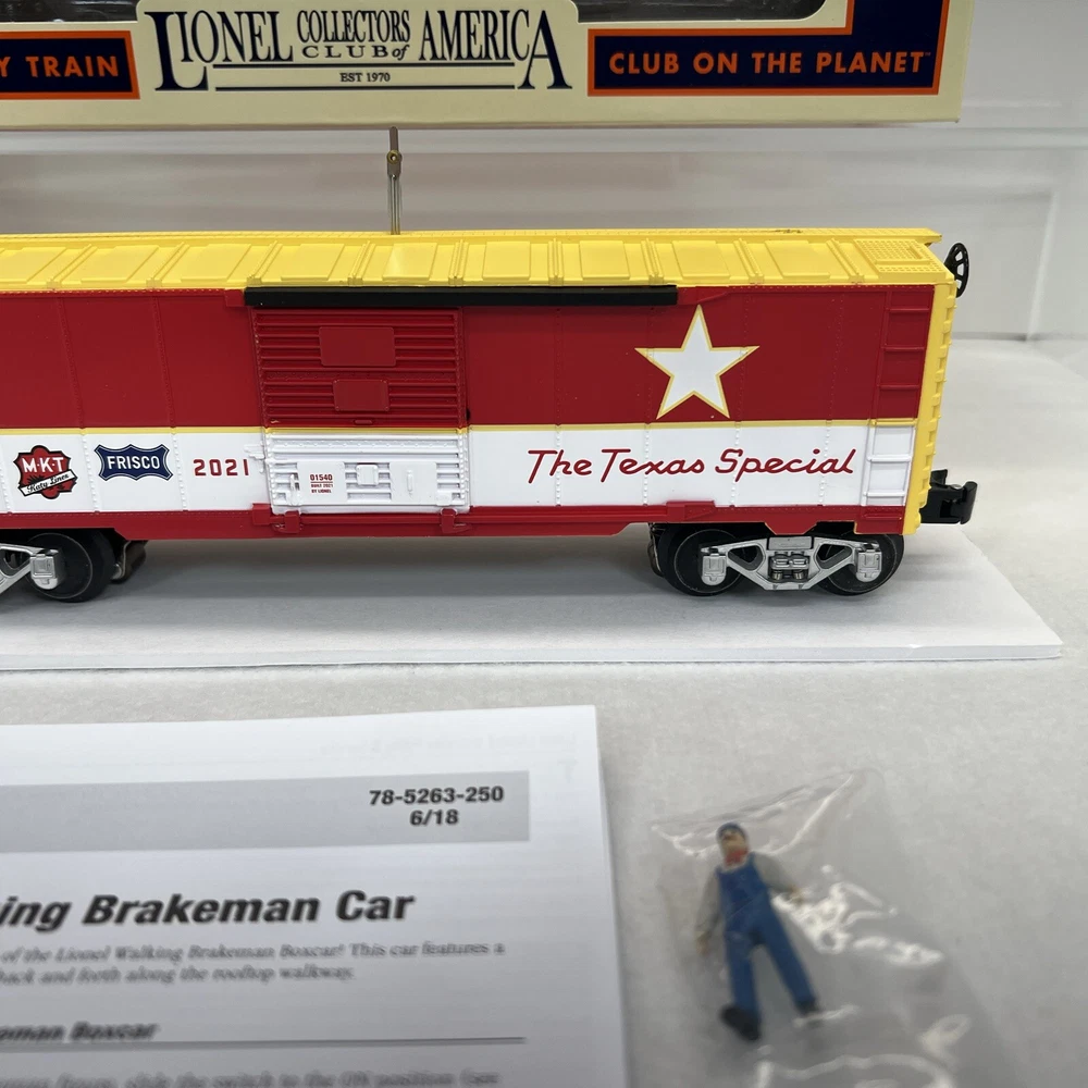 LIONEL (LCCA) LIONEL COLLECTORS CLUB OF AMERICA LCCA 2021 TEXAS SPECIAL WALKING BRAKEMAN BOX CAR THREE RAIL O GAUGE 2101540 NEW!! CLUB CAR. ORIGINAL BOX. SHIPPING BOX INCLUDED WILL BE PACKED TO ENSURE SAFE DELIVERY! Winning US bidder receives FREE SHIPPING USPS Priority UPS!! Canada Priority shipping is available . All other countries please email for a mailing quote. Thanks for looking! I ship everyday!!!!