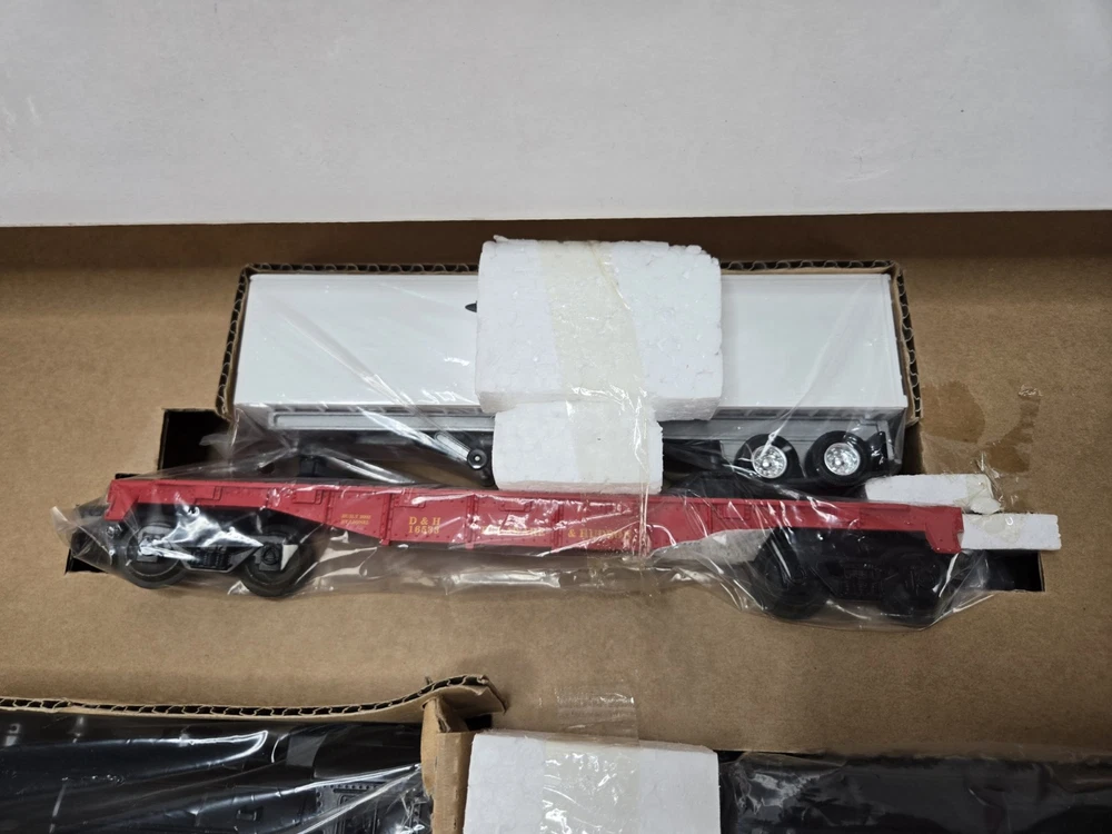 This train set is new never used. There is some slight damage to the box.However, the contents inside the box are all new and in fantastic shape. Please view all photos for the best idea of exactly what you'll receive as well as the condition of both the packaging and the contents.