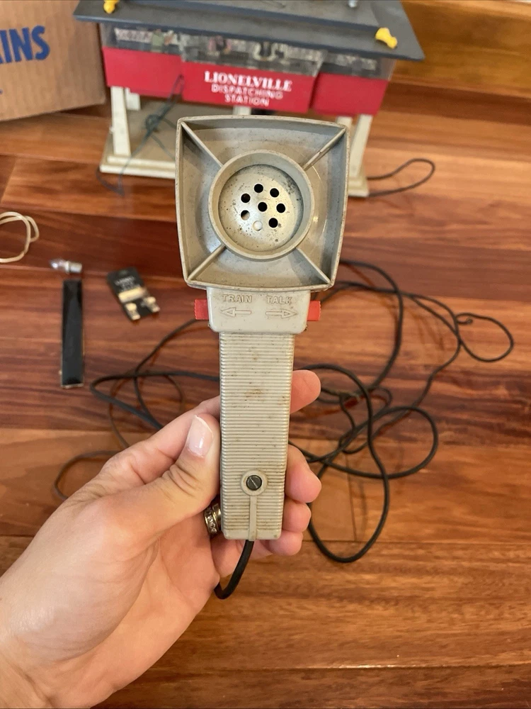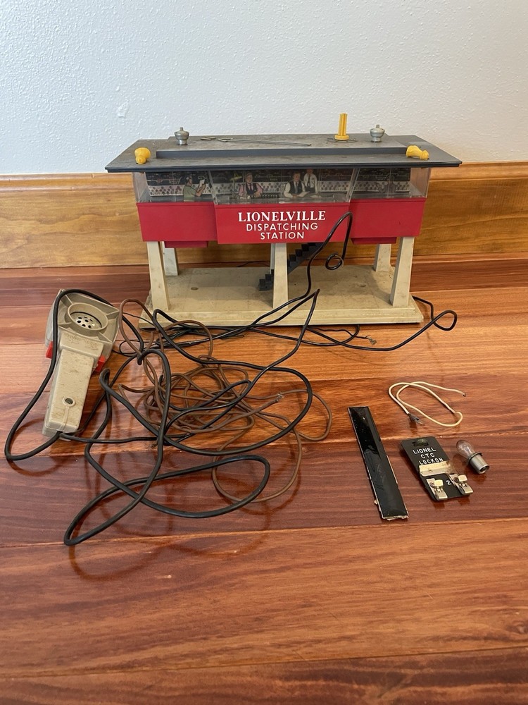 Sold as shown in photos. Untested. Has original box, train talk, Lioneville Dispatching station and pieces. Look at photos for all details. Box has wear and tear and aging.