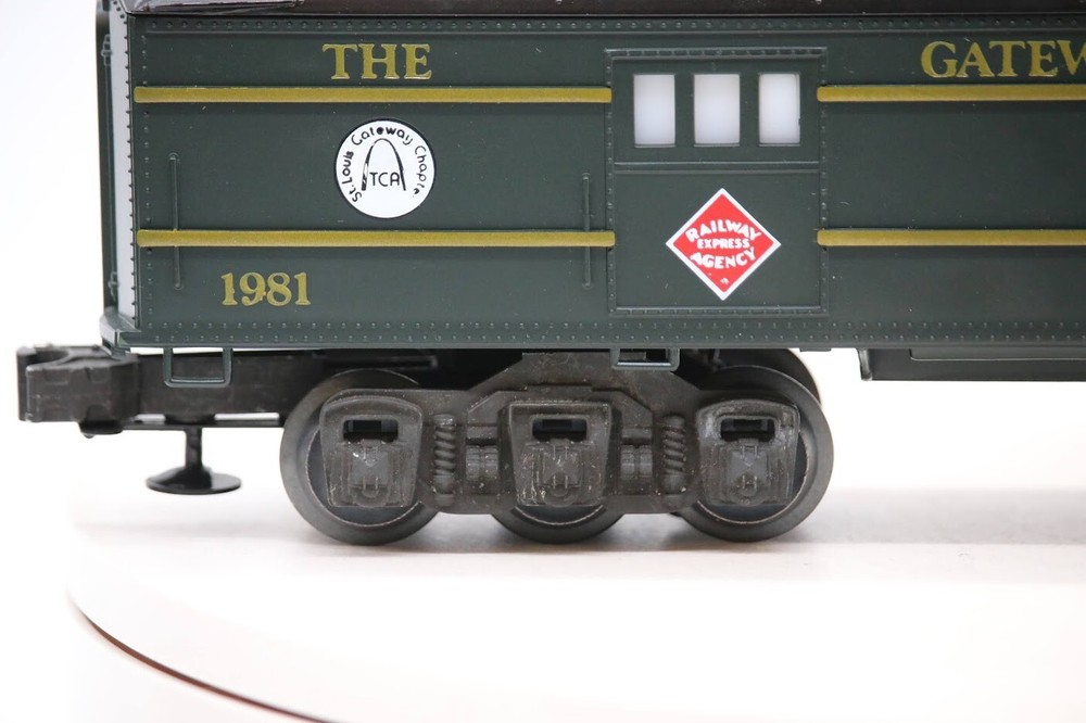 Lionel 6-0511 The Gateway To The West St. Louis 1981 TCA Baggage Passenger Car SKU#002932 Look closely at the pictures to see further details. We ships USPS PLEASE see photos for detailed condition!! There may be pieces that are missing or broken including, but not limited to, couplers, brake wheels, steps, ladders, railings, etc. May need detailed cleaning. PLEASE LOOK AT THE PHOTOS CAREFULLY BEFORE PURCHASING!! If you are purchasing more than one item from us and would like combined shipping, PLEASE request an adjusted invoice from us while still in the cart and BEFORE paying. Ebay does not usually calculate combined shipping accurately and you might get overcharged. Please be aware that when we photograph items, we use lighting that will show the details well. Although we try to present the product as accurately as possible, the lighting may affect the overall look of the item by appearing lighter/darker or possibly a different hue than the actual item. Depending on the type of lighting you have in your home, there may be some differences between the photos and the actual item. If this is a concern of yours, please feel free to request additional photos made in natural lighting or ask for a more detailed description of the item PRIOR TO PURCHASE! PLEASE NOTE: We greatly appreciate your interest in our item for sale. We look forward to a pleasant, quick and satisfying transaction for everybody, so please note the following information before bidding. Thank you! ITEM DESCRIPTIONS: * We will try to describe items well and provide plenty of photos. Please review these carefully before bidding or purchasing. * Only the items pictured and described are what you will receive when purchased. * We will occasionally offer an item clearly marked "AS-IS". This means that we are not sure if it works because we are unable to test it for whatever reason. We will offer these at a discounted price then a similar "working" item. It is possible that these items will work fine, but it also is possible that these items are more useful for their parts. Please only bid on or purchase these items if you are well aware of this, as we will only provide refunds of actual item price (no shipping cost refunds) for these items. * If you have any questions that aren't addressed by the descriptions or photos, please feel free to ask before you bid. SHIPPING: * We offer international shipping, if you have any questions please reach out. * We try to pack items as carefully as possible, but damage may occur during shipping. If you receive an item that was damaged in shipping, please contact us and we will work with you to resolve the problem. * We will combine shipping costs for all items the same buyer purchases from us within 2 days. Please wait to pay for items until you're done shopping with us. Please contact us if you're expecting to buy more items from us, or to have us adjust the shipping costs. * We will usually ship items out within 24 hours of payment being received Sunday through Friday at noon. We will notify the buyer if there will be a delay in shipping for some reason. Please allow additional time for holidays and weekends when the post office is closed. If payment is received after noon (EST) on Friday, the item might not be shipped until the following Monday. * We do try to recycle shipping materials as much as possible. RETURNS: We abide by eBay's Money Back Guarantee. We definitely want our customers to be happy with their purchase! You may return an item within 30 days of receiving it with the following guidelines: * If the item is defective or damaged (unless we clearly marked the listing "AS-IS"), the buyer will receive a full refund after the buyer returns it and it is received by us. Customers who falsely claim their item is defective, damaged, or not as described in order to receive a full refund and free return shipping will be permanently blocked from making future purchases from us. * If the item is as described (including "AS-IS" items) and the buyer decides for any other reason than defective/damaged to return it, only the actual price of the item will be refunded once it has been returned and it is received by us. The buyer will be asked to pay all original and return shipping charges. This includes all reasons other than defective/damaged, including wrong size, wrong type, changed mind, etc. All "AS-IS" items will fall into this category of return. Please make sure the item is what you want before purchasing it. * Please contact us before initiating a refund request. FEEDBACK: We always leave feedback at the end of transaction. We consider the transaction to be over when we receive feedback from the buyer confirming the item arrived satisfactorily. If you are unsatisfied with your purchase please contact us before leaving neutral or negative feedback. WE APPRECIATE POSITIVE FEEDBACK IF YOU ARE SATISFIED WITH YOUR PURCHASE! THANK YOU FOR YOUR INTEREST IN THIS ITEM!