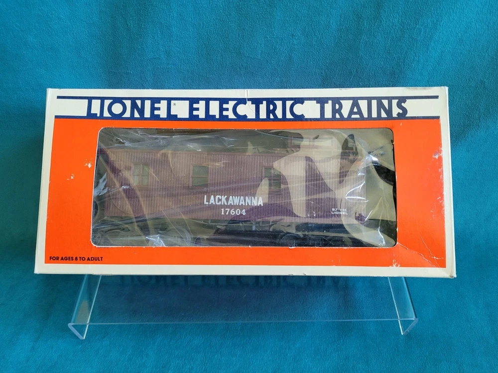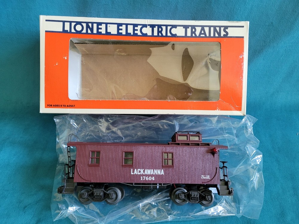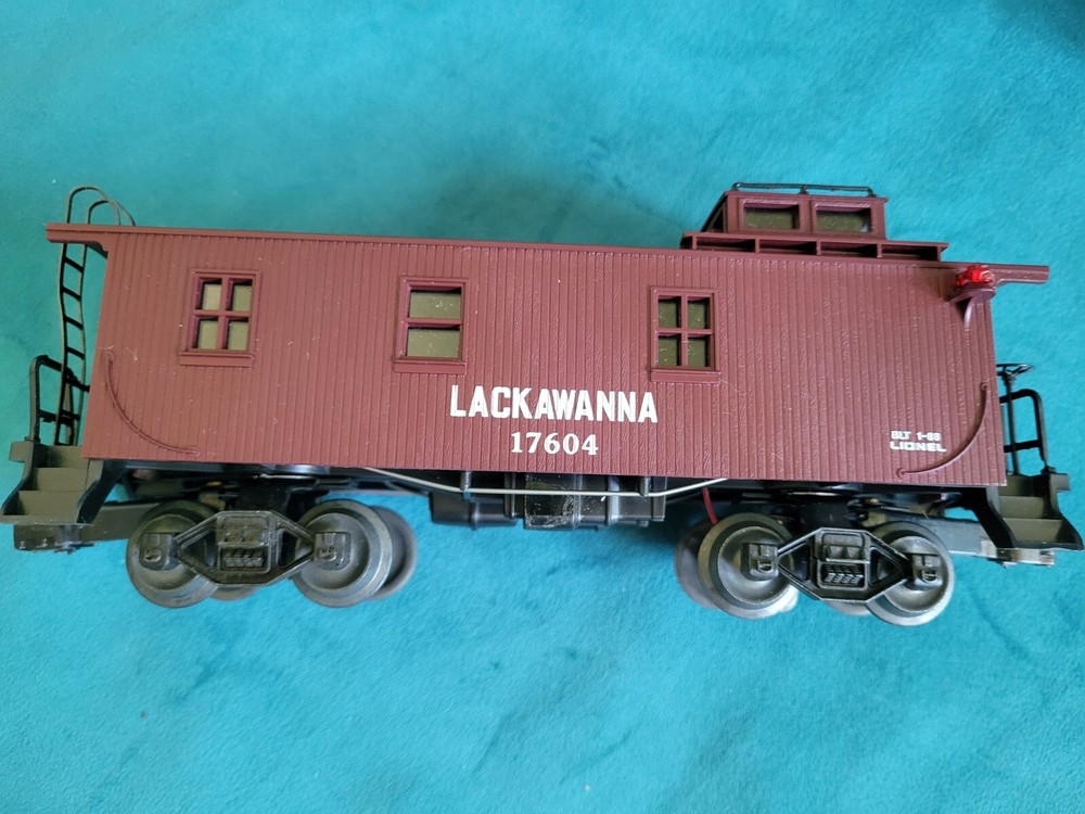 The Lionel 6-17604 Delaware, Lackwanna & Western Standard Caboose Electric Train is a vintage O gauge model replica of a Lackawanna caboose, manufactured in 1988. This three-rail system caboose features a light function and is ready-to-go out of the box. Made of plastic and featuring a brown color scheme, this 4-inch tall and 3-inch wide caboose is designed for a 1:48 scale model railroad. It is part of the transportation theme and is suitable for enthusiasts aged 8 years and above. This collectible item was made in the United States by Lionel, a well-known brand in the world of model trains. Train in perfect condition, box condition is just okay.