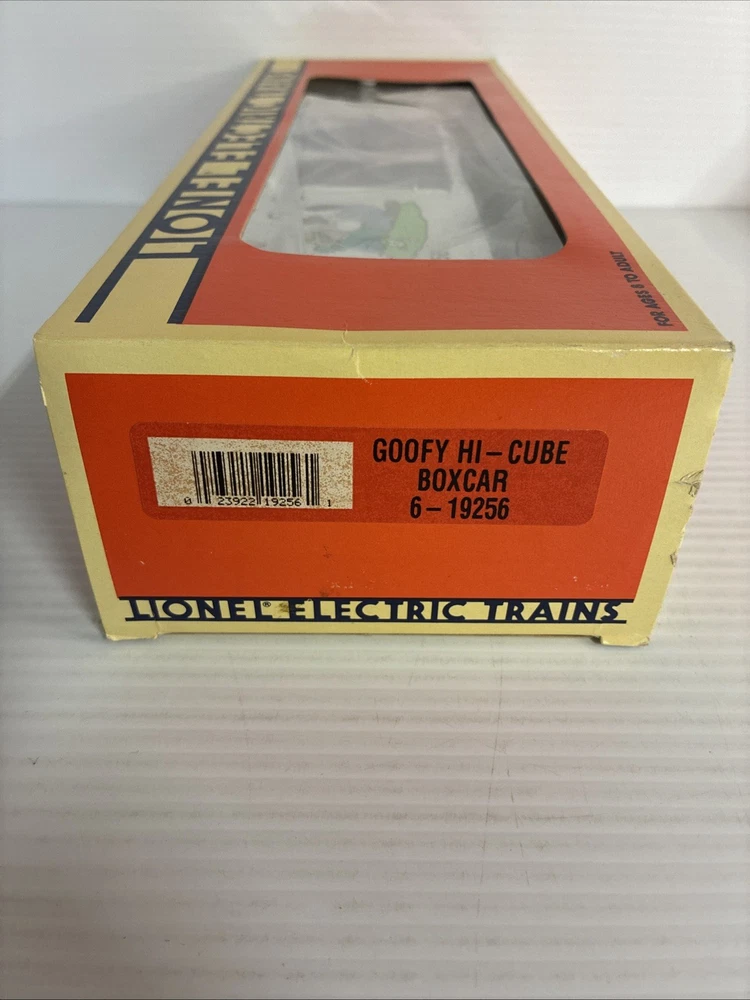The Lionel 6-19256 Goofy Hi-Cube Boxcar is a colorful, pre-built O gauge model train box car featuring the beloved Disney character Goofy. Made of plastic and scaled at 1:48, this limited edition piece is part of the Disney franchise and themed around transportation. With its vintage look and detailed advertising specimen design, this boxcar is a charming addition to any model railroad collection.