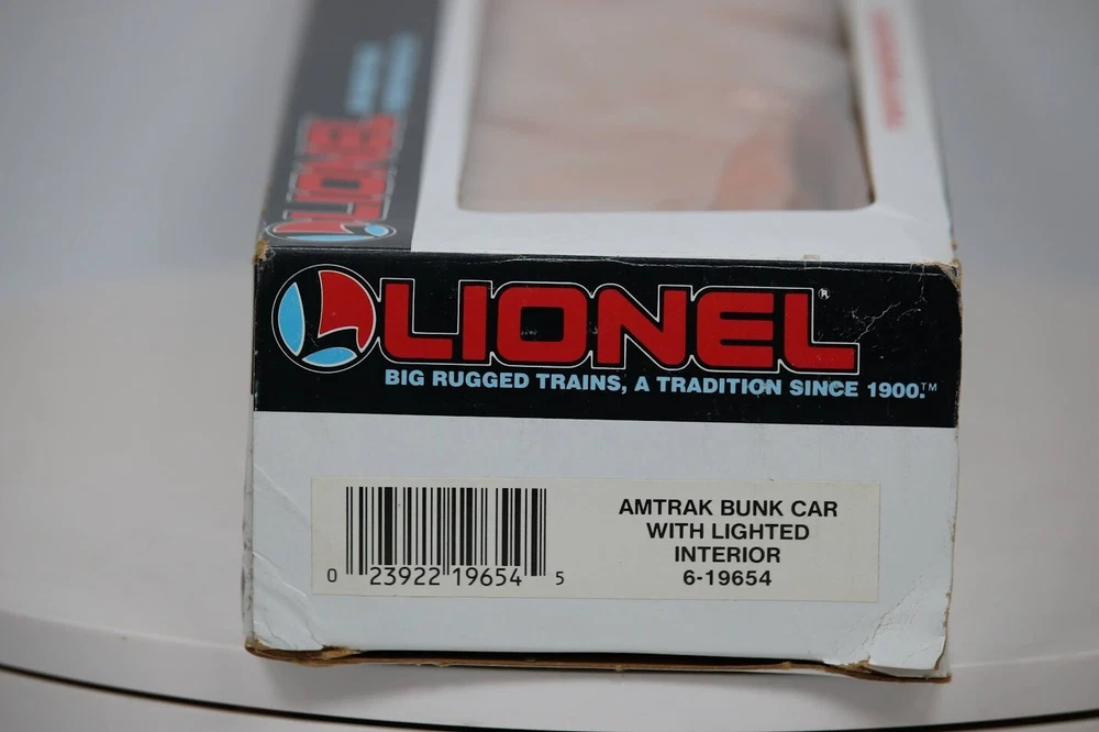 Lionel 6-19654 O Gauge Amtrak Bunk Car W/ Lighted Interior NIB Look closely at the pictures to see further details. We ships USPS PLEASE see photos for detailed condition!! . PLEASE LOOK AT THE PHOTOS CAREFULLY BEFORE PURCHASING!! If you are purchasing more than one item from us and would like combined shipping, PLEASE request an adjusted invoice from us while still in the cart and BEFORE paying. Ebay does not usually calculate combined shipping accurately and you might get overcharged. Please be aware that when we photograph items, we use lighting that will show the details well. Although we try to present the product as accurately as possible, the lighting may affect the overall look of the item by appearing lighter/darker or possibly a different hue than the actual item. Depending on the type of lighting you have in your home, there may be some differences between the photos and the actual item. If this is a concern of yours, please feel free to request additional photos made in natural lighting or ask for a more detailed description of the item PRIOR TO PURCHASE! PLEASE NOTE: We greatly appreciate your interest in our item for sale. We look forward to a pleasant, quick and satisfying transaction for everybody, so please note the following information before bidding. Thank you! ITEM DESCRIPTIONS: * We will try to describe items well and provide plenty of photos. Please review these carefully before bidding or purchasing. * Only the items pictured and described are what you will receive when purchased. * We will occasionally offer an item clearly marked "AS-IS". This means that we are not sure if it works because we are unable to test it for whatever reason. We will offer these at a discounted price then a similar "working" item. It is possible that these items will work fine, but it also is possible that these items are more useful for their parts. Please only bid on or purchase these items if you are well aware of this, as we will only provide refunds of actual item price (no shipping cost refunds) for these items. * If you have any questions that aren't addressed by the descriptions or photos, please feel free to ask before you bid. SHIPPING: * We usually do not offer shipping to international addresses, but ARE WILLING TO TAKE CONSIDERATIONS. * We try to pack items as carefully as possible, but damage may occur during shipping. If you receive an item that was damaged in shipping, please contact us and we will work with you to resolve the problem. * We will combine shipping costs for all items the same buyer purchases from us within 2 days. Please wait to pay for items until you're done shopping with us. Please contact us if you're expecting to buy more items from us, or to have us adjust the shipping costs. * We will usually ship items out within 24 hours of payment being received Sunday through Friday at noon. We will notify the buyer if there will be a delay in shipping for some reason. Please allow additional time for holidays and weekends when the post office is closed. If payment is received after noon (EST) on Friday, the item might not be shipped until the following Monday. * We do try to recycle shipping materials as much as possible. RETURNS: We abide by eBay's Money Back Guarantee. We definitely want our customers to be happy with their purchase! You may return an item within 30 days of receiving it with the following guidelines: * If the item is defective or damaged (unless we clearly marked the listing "AS-IS"), the buyer will receive a full refund after the buyer returns it and it is received by us. Customers who falsely claim their item is defective, damaged, or not as described in order to receive a full refund and free return shipping will be permanently blocked from making future purchases from us. * If the item is as described (including "AS-IS" items) and the buyer decides for any other reason than defective/damaged to return it, only the actual price of the item will be refunded once it has been returned and it is received by us. The buyer will be asked to pay all original and return shipping charges. This includes all reasons other than defective/damaged, including wrong size, wrong type, changed mind, etc. All "AS-IS" items will fall into this category of return. Please make sure the item is what you want before purchasing it. * Please contact us before initiating a refund request. FEEDBACK: We always leave feedback at the end of transaction. We consider the transaction to be over when we receive feedback from the buyer confirming the item arrived satisfactorily. If you are unsatisfied with your purchase please contact us before leaving neutral or negative feedback. WE APPRECIATE POSITIVE FEEDBACK IF YOU ARE SATISFIED WITH YOUR PURCHASE! THANK YOU FOR YOUR INTEREST IN THIS ITEM! Look closely at the pictures to see further details. We ships USPS PLEASE see photos for detailed condition!! PLEASE LOOK AT THE PHOTOS CAREFULLY BEFORE PURCHASING!! If you are purchasing more than one item from us and would like combined shipping, PLEASE request an adjusted invoice from us while still in the cart and BEFORE paying. eBay does not usually calculate combined shipping accurately and you might get overcharged. Please be aware that when we photograph items, we use lighting that will show the details well. Although we try to present the product as accurately as possible, the lighting may affect the overall look of the item by appearing lighter/darker or possibly a different hue than the actual item. Depending on the type of lighting you have in your home, there may be some differences between the photos and the actual item. If this is a concern of yours, please feel free to request additional photos made in natural lighting or ask for a more detailed description of the item PRIOR TO PURCHASE! PLEASE NOTE: We greatly appreciate your interest in our item for sale. We look forward to a pleasant, quick and satisfying transaction for everybody, so please note the following inform