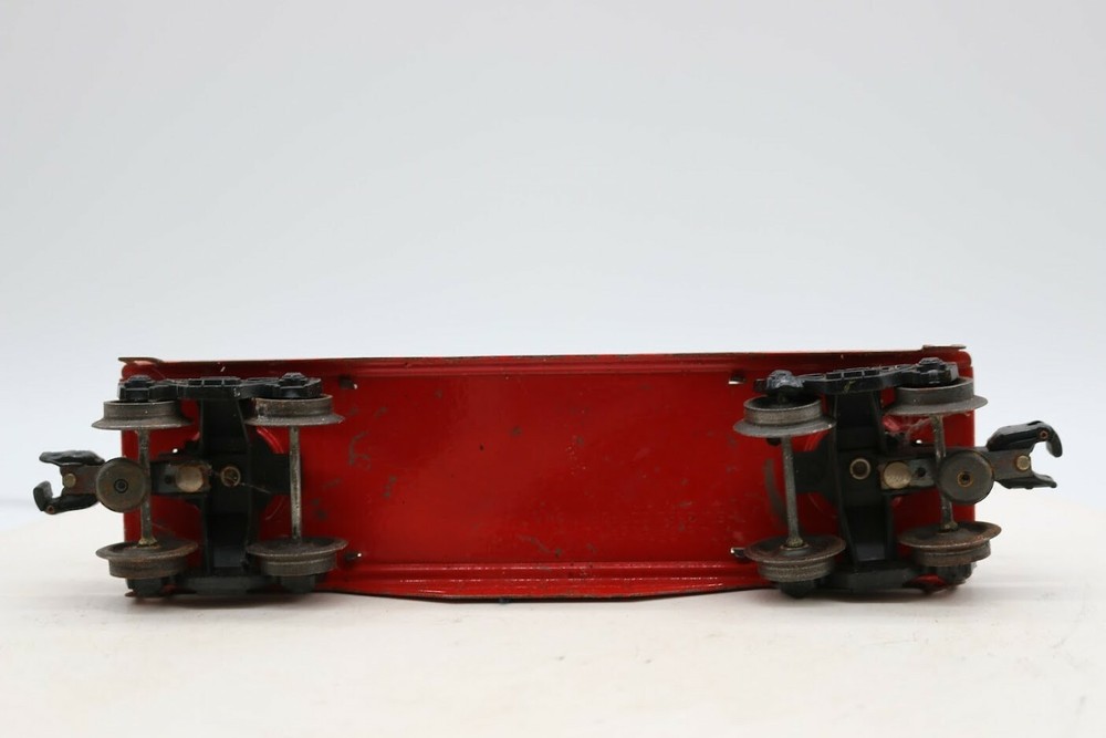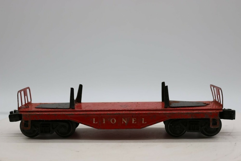 Lionel 6411 LIONEL LINES diecast RED flatcar 1946-48 No Box Look closely at the pictures to see further details. We ships USPS PLEASE see photos for detailed condition!! There may be pieces that are missing or broken including, but not limited to, couplers, brake wheels, steps, ladders, railings, etc. May need detailed cleaning. PLEASE LOOK AT THE PHOTOS CAREFULLY BEFORE PURCHASING!! If you are purchasing more than one item from us and would like combined shipping, PLEASE request an adjusted invoice from us while still in the cart and BEFORE paying. Ebay does not usually calculate combined shipping accurately and you might get overcharged. Please be aware that when we photograph items, we use lighting that will show the details well. Although we try to present the product as accurately as possible, the lighting may affect the overall look of the item by appearing lighter/darker or possibly a different hue than the actual item. Depending on the type of lighting you have in your home, there may be some differences between the photos and the actual item. If this is a concern of yours, please feel free to request additional photos made in natural lighting or ask for a more detailed description of the item PRIOR TO PURCHASE! PLEASE NOTE: We greatly appreciate your interest in our item for sale. We look forward to a pleasant, quick and satisfying transaction for everybody, so please note the following information before bidding. Thank you! ITEM DESCRIPTIONS: * We will try to describe items well and provide plenty of photos. Please review these carefully before bidding or purchasing. * Only the items pictured and described are what you will receive when purchased. * We will occasionally offer an item clearly marked "AS-IS". This means that we are not sure if it works because we are unable to test it for whatever reason. We will offer these at a discounted price then a similar "working" item. It is possible that these items will work fine, but it also is possible that these items are more useful for their parts. Please only bid on or purchase these items if you are well aware of this, as we will only provide refunds of actual item price (no shipping cost refunds) for these items. * If you have any questions that aren't addressed by the descriptions or photos, please feel free to ask before you bid. SHIPPING: * We usually do not offer shipping to international addresses, but ARE WILLING TO TAKE CONSIDERATIONS. * We try to pack items as carefully as possible, but damage may occur during shipping. If you receive an item that was damaged in shipping, please contact us and we will work with you to resolve the problem. * We will combine shipping costs for all items the same buyer purchases from us within 2 days. Please wait to pay for items until you're done shopping with us. Please contact us if you're expecting to buy more items from us, or to have us adjust the shipping costs. * We will usually ship items out within 24 hours of payment being received Sunday through Friday at noon. We will notify the buyer if there will be a delay in shipping for some reason. Please allow additional time for holidays and weekends when the post office is closed. If payment is received after noon (EST) on Friday, the item might not be shipped until the following Monday. * We do try to recycle shipping materials as much as possible. RETURNS: We abide by eBay's Money Back Guarantee. We definitely want our customers to be happy with their purchase! You may return an item within 30 days of receiving it with the following guidelines: * If the item is defective or damaged (unless we clearly marked the listing "AS-IS"), the buyer will receive a full refund after the buyer returns it and it is received by us. Customers who falsely claim their item is defective, damaged, or not as described in order to receive a full refund and free return shipping will be permanently blocked from making future purchases from us. * If the item is as described (including "AS-IS" items) and the buyer decides for any other reason than defective/damaged to return it, only the actual price of the item will be refunded once it has been returned and it is received by us. The buyer will be asked to pay all original and return shipping charges. This includes all reasons other than defective/damaged, including wrong size, wrong type, changed mind, etc. All "AS-IS" items will fall into this category of return. Please make sure the item is what you want before purchasing it. * Please contact us before initiating a refund request. FEEDBACK: We always leave feedback at the end of transaction. We consider the transaction to be over when we receive feedback from the buyer confirming the item arrived satisfactorily. If you are unsatisfied with your purchase please contact us before leaving neutral or negative feedback. WE APPRECIATE POSITIVE FEEDBACK IF YOU ARE SATISFIED WITH YOUR PURCHASE! THANK YOU FOR YOUR INTEREST IN THIS ITEM!