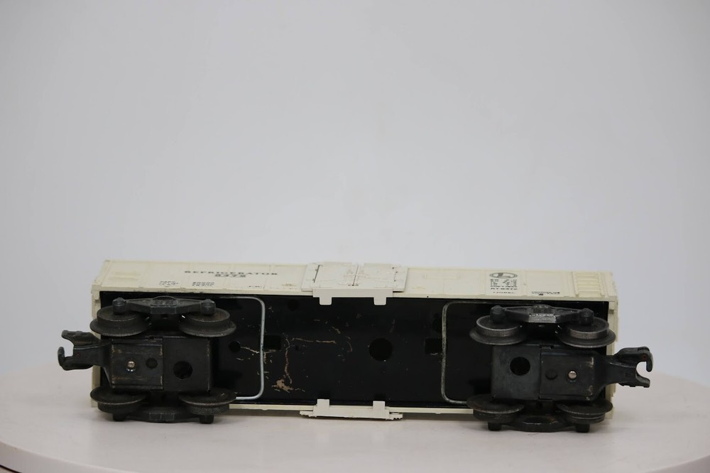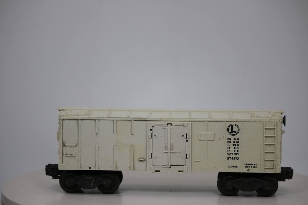 Lionel Post War 6472 "Crushed Ice" Refrigerator Freight Train Box Car SKU#008394 PLEASE see photos for detailed condition!! There may be pieces that are missing or broken including, but not limited too, couplers, brake wheels, steps, ladders, railings, etc. May need detailed cleaning. PLEASE LOOK AT THE PHOTOS CAREFULLY BEFORE PURCHASING!! If you are purchasing more than one item from us and would like combined shipping, PLEASE request an adjusted invoice from us while still in the cart and BEFORE paying. eBay does not usually calculate combined shipping accurately and you might get overcharged. Please be aware that when we photograph items, we use lighting that will show the details well. Although we try to present the product as accurately as possible, the lighting may affect the overall look of the item by appearing lighter/darker or possibly a different hue than the actual item. Depending on the type of lighting you have in your home, there may be some differences between the photos and the actual item. If this is a concern of yours, please feel free to request additional photos made in natural lighting or ask for a more detailed description of the item PRIOR TO PURCHASE! PLEASE NOTE: We greatly appreciate your interest in our item for sale. We look forward to a pleasant, quick and satisfying transaction for everybody, so please note the following information before bidding. Thank you! ITEM DESCRIPTIONS: * We will try to describe items well and provide plenty of photos. Please review these carefully before bidding or purchasing. * Only the items pictured and described are what you will receive when purchased. * We will occasionally offer an item clearly marked "AS-IS". This means that we are not sure if it works because we are unable to test it for whatever reason. We will offer these at a discounted price than a similar "working" item. It is possible that these items will work fine, but it also is possible that these items are more useful for their parts. Please only bid on or purchase these items if you are well aware of this, as we will only provide refunds of actual item price (no shipping cost refunds) for these items. * If you have any questions that aren't addressed by the descriptions or photos, please feel free to ask before you bid. SHIPPING: * We usually do not offer shipping to international addresses, but ARE WILLING TO TAKE CONSIDERATIONS. * We try to pack items as carefully as possible, but damage may occur during shipping. If you receive an item that was damaged in shipping, please contact us and we will work with you to resolve the problem. * We will combine shipping costs for all items the same buyer purchases from us within 2 days. Please wait to pay for items until you're done shopping with us. Please contact us if you're expecting to buy more items from us, or to have us adjust the shipping costs. * We will usually ship items out within 24 hours of payment being received Sunday through Friday at noon. We will notify the buyer if there will be a delay in shipping for some reason. Please allow additional time for holidays and weekends when the post office is closed. If payment is received after noon (EST) on Friday, the item might not be shipped until the following Monday. * We do try to recycle shipping materials as much as possible. RETURNS: We abide by eBay's Money Back Guarantee. We definitely want our customers to be happy with their purchase! You may return an item within 30 days of receiving it with the following guidelines: * If the item is defective or damaged (unless we clearly marked the listing "AS-IS"), the buyer will receive a full refund after the buyer returns it and it is received by us. Customers who falsely claim their item is defective, damaged, or not as described in order to receive a full refund and free return shipping will be permanently blocked from making future purchases from us. * If the item is as described (including "AS-IS" items) and the buyer decides for any other reason than defective/damaged to return it, only the actual price of the item will be refunded once it has been returned and it is received by us. The buyer will be asked to pay all original and return shipping charges. This includes all reasons other than defective/damaged, including wrong size, wrong type, changed mind, etc. All "AS-IS" items will fall into this category of return. Please make sure the item is what you want before purchasing it. * Please contact us before initiating a refund request. FEEDBACK: We always leave feedback at the end of transaction. We consider the transaction to be over when we receive feedback from the buyer confirming the item arrived satisfactorily. If you are unsatisfied with your purchase please contact us before leaving neutral or negative feedback. WE APPRECIATE POSITIVE FEEDBACK IF YOU ARE SATISFIED WITH YOUR PURCHASE! THANK YOU FOR YOUR INTEREST IN THIS ITEM!
