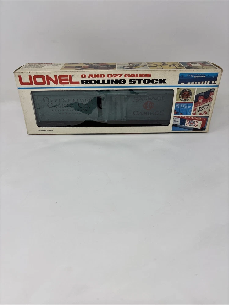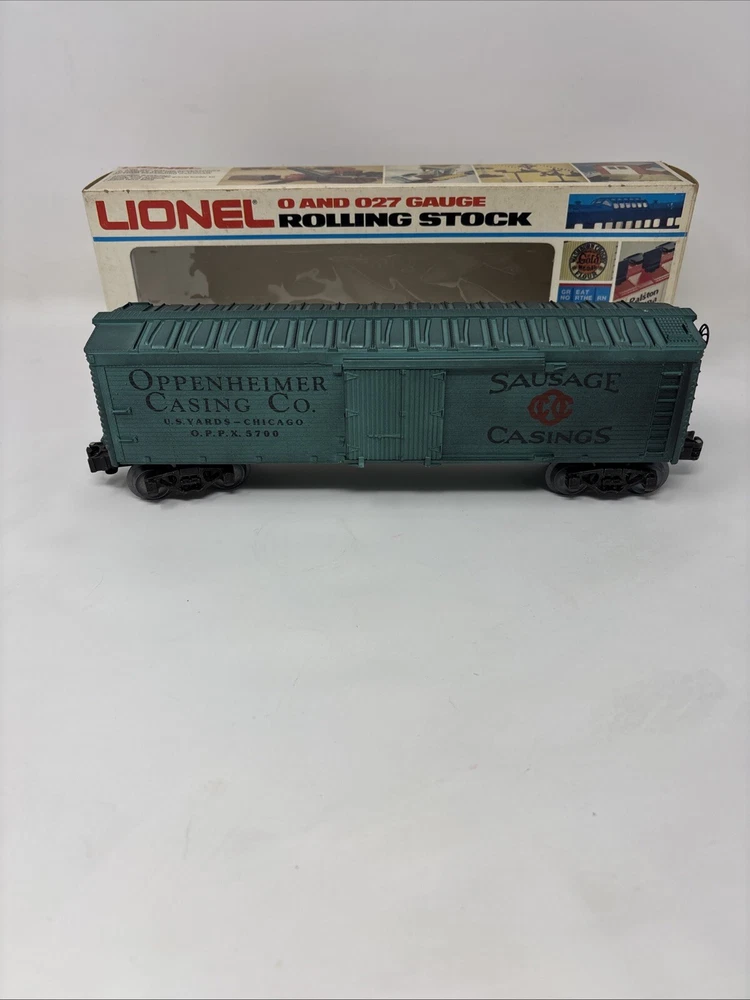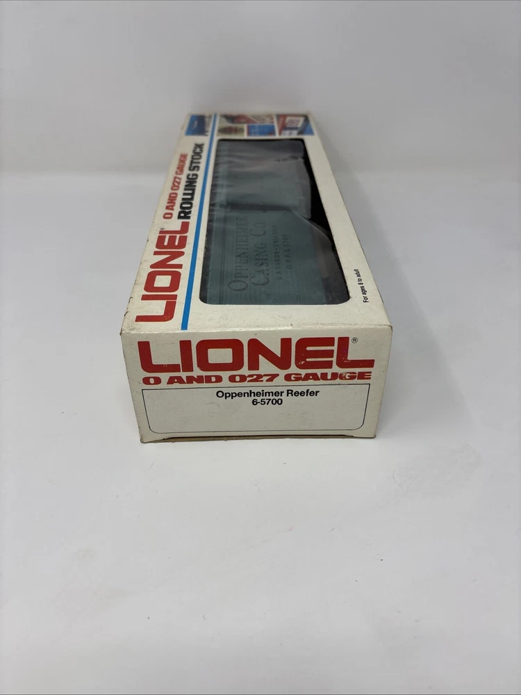 The product is a Lionel Box Car in green color, specifically the Lionel 6-5700 Train Box Car Oppenheimer Casing Company Reefer Car. It is designed for O-27 gauge model railroads and features the branding of Lionel. Please refer to photos for condition very clean and well taken care of.