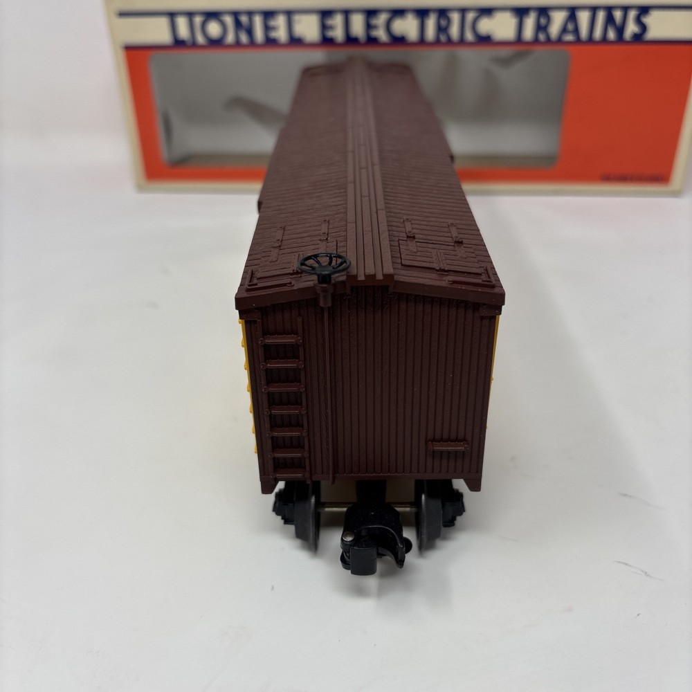 The product is a Lionel O Gauge Southwestern Cotton Belt Reefer Car replica of Santa Fe. It comes with its original box and is a part of the Lionel brand. It is a toy model railroad freight car.
