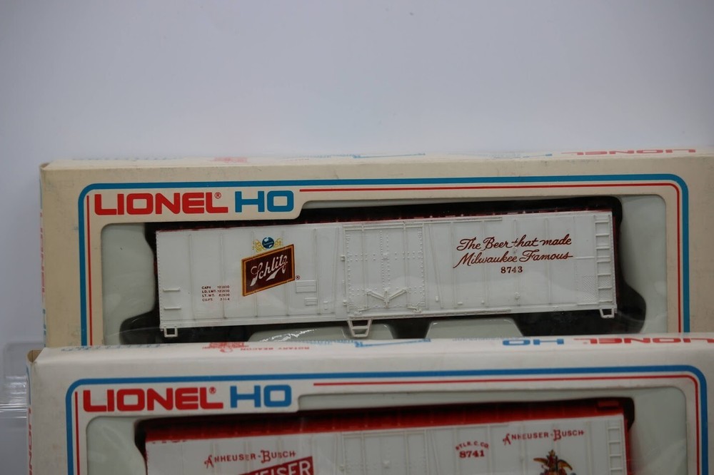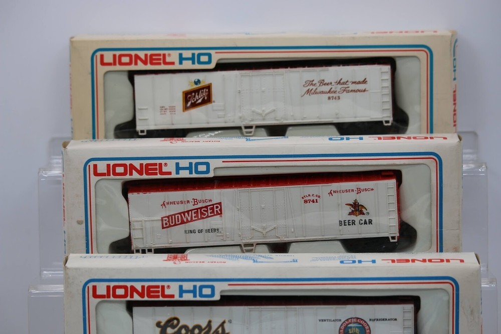 Lionel Budweiser, Coors, Schlitz Beer Reefer Plug Door Box Cars 8741. 8743, 8740 Look closely at the pictures to see further details. We ships USPS PLEASE see photos for detailed condition!! PLEASE LOOK AT THE PHOTOS CAREFULLY BEFORE PURCHASING!! If you are purchasing more than one item from us and would like combined shipping, PLEASE request an adjusted invoice from us while still in the cart and BEFORE paying. eBay does not usually calculate combined shipping accurately and you might get overcharged. Please be aware that when we photograph items, we use lighting that will show the details well. Although we try to present the product as accurately as possible, the lighting may affect the overall look of the item by appearing lighter/darker or possibly a different hue than the actual item. Depending on the type of lighting you have in your home, there may be some differences between the photos and the actual item. If this is a concern of yours, please feel free to request additional photos made in natural lighting or ask for a more detailed description of the item PRIOR TO PURCHASE! There may be pieces that are missing or broken including, but not limited to, couplers, brake wheels, steps, ladders, railings, etc. May need detailed cleaning. PLEASE NOTE: We greatly appreciate your interest in our item for sale. We look forward to a pleasant, quick and satisfying transaction for everybody, so please note the following information before bidding. Thank you! ITEM DESCRIPTIONS: * We will try to describe items well and provide plenty of photos. Please review these carefully before bidding or purchasing. * Only the items pictured and described are what you will receive when purchased. * We will occasionally offer an item clearly marked "AS-IS". This means that we are not sure if it works because we are unable to test it for whatever reason. We will offer these at a discounted price then a similar "working" item. It is possible that these items will work fine, but it also is possible that these items are more useful for their parts. Please only bid on or purchase these items if you are well aware of this, as we will only provide refunds of actual item price (no shipping cost refunds) for these items. * If you have any questions that aren't addressed by the descriptions or photos, please feel free to ask before you bid. SHIPPING: * We usually do not offer shipping to international addresses, but ARE WILLING TO TAKE CONSIDERATIONS. * We try to pack items as carefully as possible, but damage may occur during shipping. If you receive an item that was damaged in shipping, please contact us and we will work with you to resolve the problem. * We will combine shipping costs for all items the same buyer purchases from us within 2 days. Please wait to pay for items until you're done shopping with us. Please contact us if you're expecting to buy more items from us, or to have us adjust the shipping costs. * We will usually ship items out within 24 hours of payment being received Sunday through Friday at noon. We will notify the buyer if there will be a delay in shipping for some reason. Please allow additional time for holidays and weekends when the post office is closed. If payment is received after noon (EST) on Friday, the item might not be shipped until the following Monday. * We do try to recycle shipping materials as much as possible. RETURNS: We abide by eBay's Money Back Guarantee. We definitely want our customers to be happy with their purchase! You may return an item within 30 days of receiving it with the following guidelines: * If the item is defective or damaged (unless we clearly marked the listing "AS-IS"), the buyer will receive a full refund after the buyer returns it and it is received by us. Customers who falsely claim their item is defective, damaged, or not as described in order to receive a full refund and free return shipping will be permanently blocked from making future purchases from us. * If the item is as described (including "AS-IS" items) and the buyer decides for any other reason than defective/damaged to return it, only the actual price of the item will be refunded once it has been returned and it is received by us. The buyer will be asked to pay all original and return shipping charges. This includes all reasons other than defective/damaged, including wrong size, wrong type, changed mind, etc. All "AS-IS" items will fall into this category of return. Please make sure the item is what you want before purchasing it. * Please contact us before initiating a refund request. FEEDBACK: We always leave feedback at the end of transaction. We consider the transaction to be over when we receive feedback from the buyer confirming the item arrived satisfactorily. If you are unsatisfied with your purchase please contact us before leaving neutral or negative feedback. WE APPRECIATE POSITIVE FEEDBACK IF YOU ARE SATISFIED WITH YOUR PURCHASE! THANK YOU FOR YOUR INTEREST IN THIS ITEM!