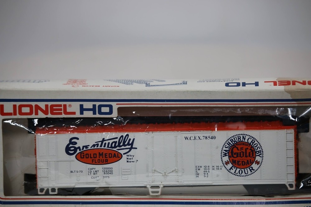 Lionel HO Scale VTG Train Car 5-8540 WCFX 78540 Gold Medal Reefer Made USA Box has been stored poorly. Contents are brand new Look closely at the pictures to see further details. PLEASE see photos for detailed condition!! PLEASE LOOK AT THE PHOTOS CAREFULLY BEFORE PURCHASING!! If you are purchasing more than one item from us and would like combined shipping, PLEASE request an adjusted invoice from us while still in the cart and BEFORE paying. eBay does not usually calculate combined shipping accurately and you might get overcharged. Please be aware that when we photograph items, we use lighting that will show the details well. Although we try to present the product as accurately as possible, the lighting may affect the overall look of the item by appearing lighter/darker or possibly a different hue than the actual item. Depending on the type of lighting you have in your home, there may be some differences between the photos and the actual item. If this is a concern of yours, please feel free to request additional photos made in natural lighting or ask for a more detailed description of the item PRIOR TO PURCHASE! There may be pieces that are missing or broken including, but not limited to, couplers, brake wheels, steps, ladders, railings, etc. May need detailed cleaning. PLEASE NOTE: We greatly appreciate your interest in our item for sale. We look forward to a pleasant, quick and satisfying transaction for everybody, so please note the following information before bidding. Thank you! ITEM DESCRIPTIONS: * We will try to describe items well and provide plenty of photos. Please review these carefully before bidding or purchasing. * Only the items pictured and described are what you will receive when purchased. * We will occasionally offer an item clearly marked "AS-IS". This means that we are not sure if it works because we are unable to test it for whatever reason. We will offer these at a discounted price then a similar "working" item. It is possible that these items will work fine, but it also is possible that these items are more useful for their parts. Please only bid on or purchase these items if you are well aware of this, as we will only provide refunds of actual item price (no shipping cost refunds) for these items. * If you have any questions that aren't addressed by the descriptions or photos, please feel free to ask before you bid. SHIPPING: * We offer international shipping, please feel free to contact us if you have any questions. * We try to pack items as carefully as possible, but damage may occur during shipping. If you receive an item that was damaged in shipping, please contact us and we will work with you to resolve the problem. * We will combine shipping costs for all items the same buyer purchases from us within 2 days. Please wait to pay for items until you're done shopping with us. Please contact us if you're expecting to buy more items from us, or to have us adjust the shipping costs. * We will usually ship items out within 24 hours of payment being received Sunday through Friday at noon. We will notify the buyer if there will be a delay in shipping for some reason. Please allow additional time for holidays and weekends when the post office is closed. If payment is received after noon (EST) on Friday, the item might not be shipped until the following Monday Or Later If Monday Is Holiday. * We do try to recycle shipping materials as much as possible. RETURNS: We abide by eBay's Money Back Guarantee. We definitely want our customers to be happy with their purchase! You may return an item within 30 days of receiving it with the following guidelines: * If the item is defective or damaged (unless we clearly marked the listing "AS-IS"), the buyer will receive a full refund after the buyer returns it and it is received by us. Customers who falsely claim their item is defective, damaged, or not as described in order to receive a full refund and free return shipping will be permanently blocked from making future purchases from us. * If the item is as described (including "AS-IS" items) and the buyer decides for any other reason than defective/damaged to return it, only the actual price of the item will be refunded once it has been returned and it is received by us. The buyer will be asked to pay all original and return shipping charges. This includes all reasons other than defective/damaged, including wrong size, wrong type, changed mind, etc. All "AS-IS" items will fall into this category of return. Please make sure the item is what you want before purchasing it. * Please contact us before initiating a refund request, issues, questions or concerns. We will do our best to get back to you as quickly as we can. Thank you and if you read this far... you are awesome and we hope you have a great day!! FEEDBACK: We always leave feedback at the end of transaction. We consider the transaction to be over when we receive feedback from the buyer confirming the item arrived satisfactorily. If you are unsatisfied with your purchase please contact us before leaving neutral or negative feedback. WE APPRECIATE POSITIVE FEEDBACK IF YOU ARE SATISFIED WITH YOUR PURCHASE! THANK YOU FOR YOUR INTEREST IN THIS ITEM!