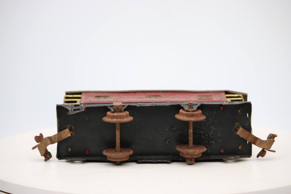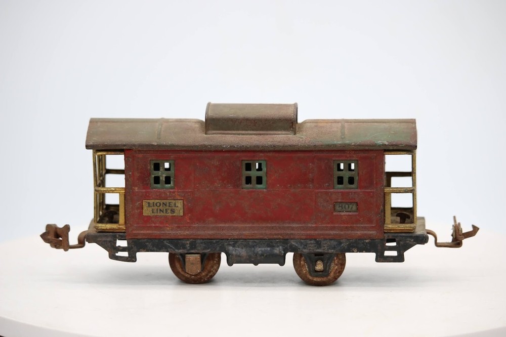 Lionel Lines #807 Late Production Prewar caboose tinplate SKU#005738 PLEASE see photos for detailed condition!! PLEASE LOOK AT THE PHOTOS CAREFULLY BEFORE PURCHASING!! If you are purchasing more than one item from us and would like combined shipping, PLEASE request an adjusted invoice from us while still in the cart and BEFORE paying. eBay does not usually calculate combined shipping accurately and you might get overcharged. Please be aware that when we photograph items, we use lighting that will show the details well. Although we try to present the product as accurately as possible, the lighting may affect the overall look of the item by appearing lighter/darker or possibly a different hue than the actual item. Depending on the type of lighting you have in your home, there may be some differences between the photos and the actual item. If this is a concern of yours, please feel free to request additional photos made in natural lighting or ask for a more detailed description of the item PRIOR TO PURCHASE! There may be pieces that are missing or broken including, but not limited too, couplers, brake wheels, steps, ladders, railings, etc. May need detailed cleaning. PLEASE NOTE: We greatly appreciate your interest in our item for sale. We look forward to a pleasant, quick and satisfying transaction for everybody, so please note the following information before bidding. Thank you! ITEM DESCRIPTIONS: * We will try to describe items well and provide plenty of photos. Please review these carefully before bidding or purchasing. * Only the items pictured and described are what you will receive when purchased. * We will occasionally offer an item clearly marked "AS-IS". This means that we are not sure if it works because we are unable to test it for whatever reason. We will offer these at a discounted price than a similar "working" item. It is possible that these items will work fine, but it also is possible that these items are more useful for their parts. Please only bid on or purchase these items if you are well aware of this, as we will only provide refunds of actual item price (no shipping cost refunds) for these items. * If you have any questions that aren't addressed by the descriptions or photos, please feel free to ask before you bid. SHIPPING: * We usually do not offer shipping to international addresses, but ARE WILLING TO TAKE CONSIDERATIONS. * We try to pack items as carefully as possible, but damage may occur during shipping. If you receive an item that was damaged in shipping, please contact us and we will work with you to resolve the problem. * We will combine shipping costs for all items the same buyer purchases from us within 2 days. Please wait to pay for items until you're done shopping with us. Please contact us if you're expecting to buy more items from us, or to have us adjust the shipping costs. * We will usually ship items out within 24 hours of payment being received Sunday through Friday at noon. We will notify the buyer if there will be a delay in shipping for some reason. Please allow additional time for holidays and weekends when the post office is closed. If payment is received after noon (EST) on Friday, the item might not be shipped until the following Monday. * We do try to recycle shipping materials as much as possible. RETURNS: We abide by eBay's Money Back Guarantee. We definitely want our customers to be happy with their purchase! You may return an item within 30 days of receiving it with the following guidelines: * If the item is defective or damaged (unless we clearly marked the listing "AS-IS"), the buyer will receive a full refund after the buyer returns it and it is received by us. Customers who falsely claim their item is defective, damaged, or not as described in order to receive a full refund and free return shipping will be permanently blocked from making future purchases from us. * If the item is as described (including "AS-IS" items) and the buyer decides for any other reason than defective/damaged to return it, only the actual price of the item will be refunded once it has been returned and it is received by us. The buyer will be asked to pay all original and return shipping charges. This includes all reasons other than defective/damaged, including wrong size, wrong type, changed mind, etc. All "AS-IS" items will fall into this category of return. Please make sure the item is what you want before purchasing it. * Please contact us before initiating a refund request. FEEDBACK: We always leave feedback at the end of transaction. We consider the transaction to be over when we receive feedback from the buyer confirming the item arrived satisfactorily. If you are unsatisfied with your purchase please contact us before leaving neutral or negative feedback. WE APPRECIATE POSITIVE FEEDBACK IF YOU ARE SATISFIED WITH YOUR PURCHASE! THANK YOU FOR YOUR INTEREST IN THIS ITEM!